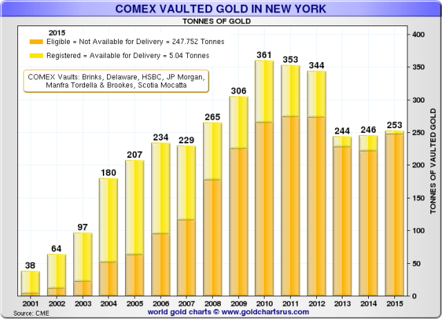 Several months ago the comex had 303 tonnes of total gold. Today, the total inventory rests at 213.27 tonnes for a loss of 90 tonnes over that period.