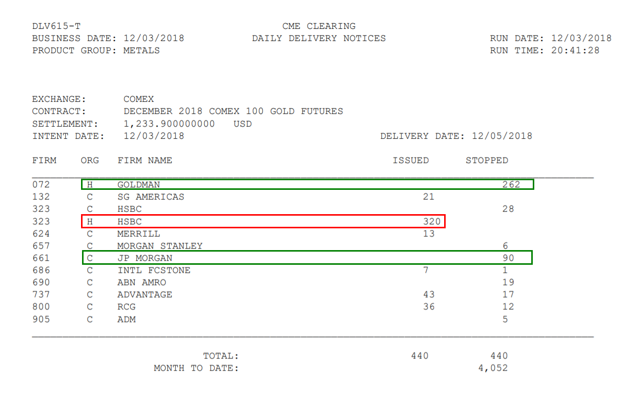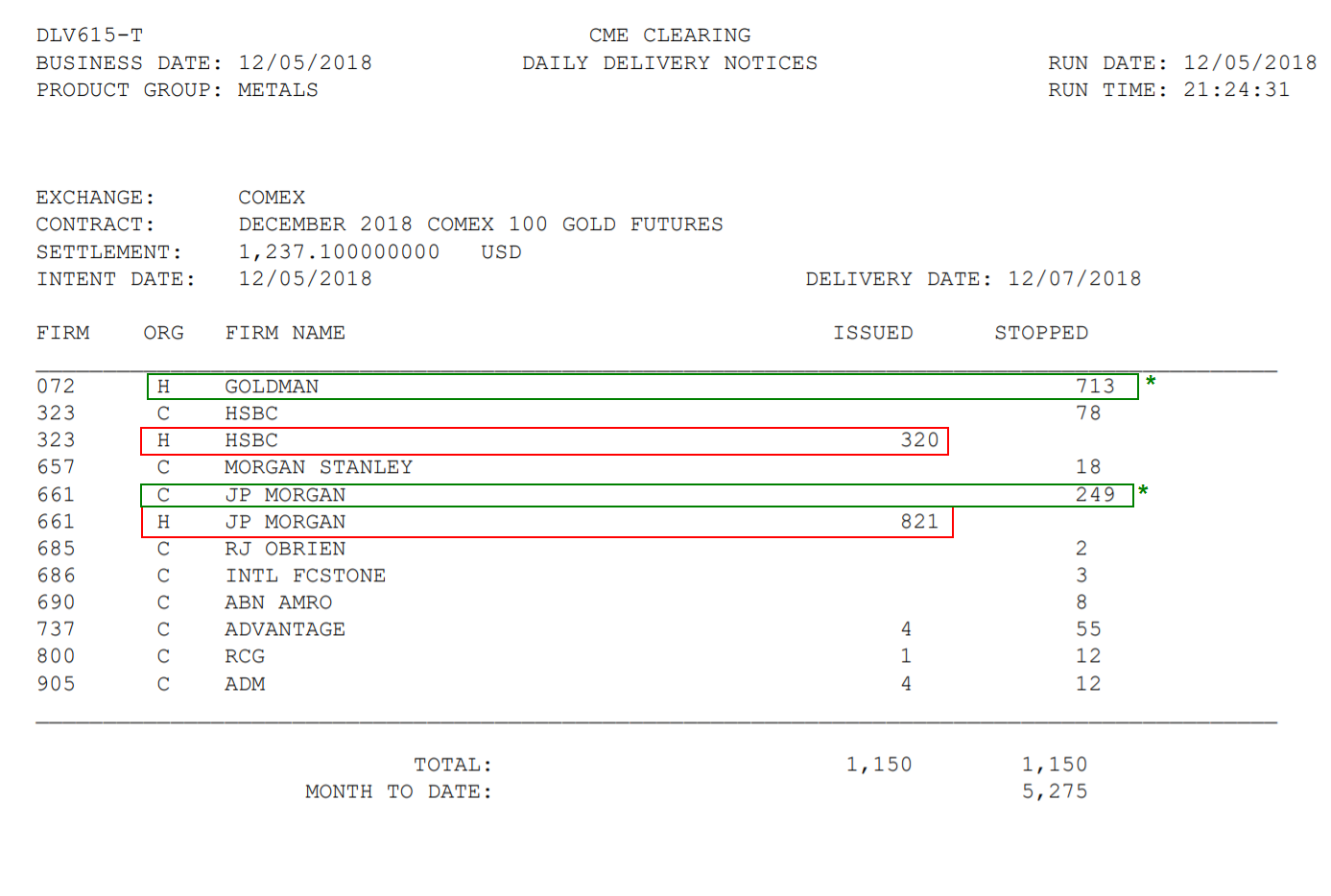 Again, we have Goldman Sachs dealer and JPMorgan customer account stopping (receiving the gold) 9/12 contracts.