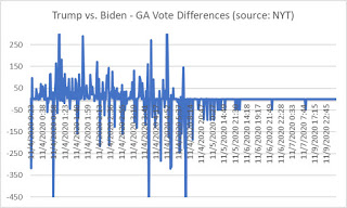 Notice the similarities in PA and GA? How the right sides of the graph show virtually no movement for Trump; and very predictable vote movements to Biden. How predictable?