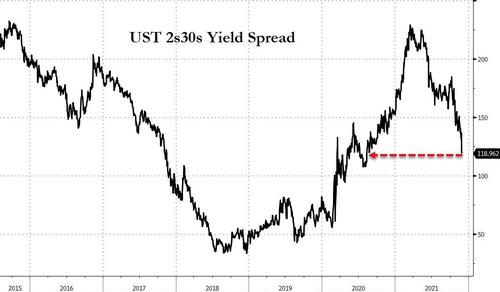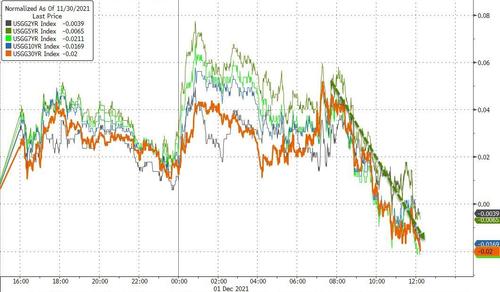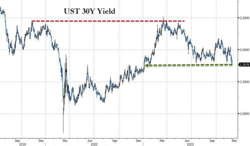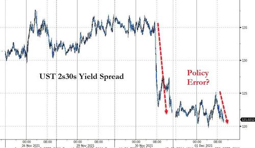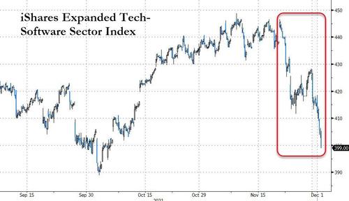 Following a brief rebound on Monday, Dow futures fell 527 points overnight, while contracts linked to the S&P 500 and Nasdaq slipped 0.9% and 0.5%, respectively. WTI crude oil is also off 2.3% to $68.37/bbl, while the 10-year Treasury yield fell 8 bps to 1.45%. The downward trend followed a warning from Fed Chair Jerome Powell, which wrote in prepared testimony to Congress that Omicron and COVID, in general, could threaten the economy’s post-pandemic recovery. Moderna’s CEO is also predicting that existing vaccines will struggle with the new variant, sending fresh shockwaves through the markets… https://seekingalpha.com/news/3775170-dow-futures-tumble-over-500-points-on-vaccine-fears-powell-warning