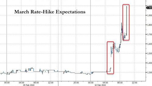 That sent the odds of a 50bps March rate-hike up to 100%…
