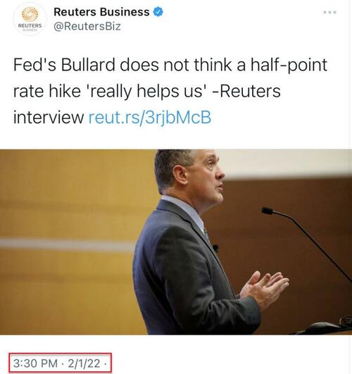 Now will The Fed start jawboning a higher risk of 50bps so as not to tally shock stocks?