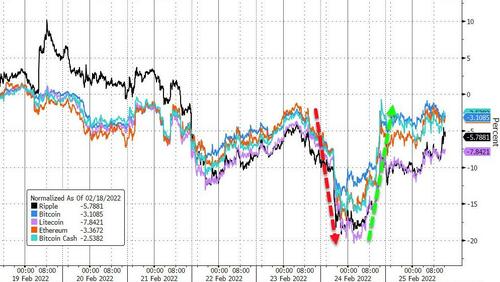 There probably was a fair amount of safe haven buying of US assets by Europeans, but the fingerprints of impact trading/manipulation were evident.  Why would anyone buy US stocks so aggressively given that Joe Biden is now a ‘war-time president’?