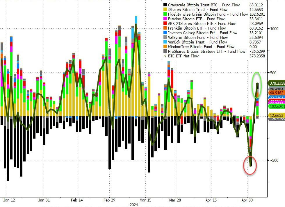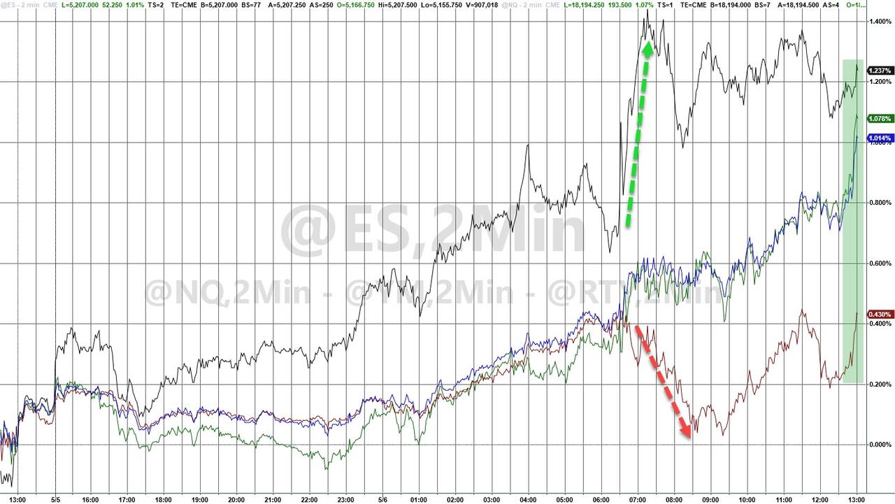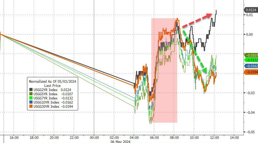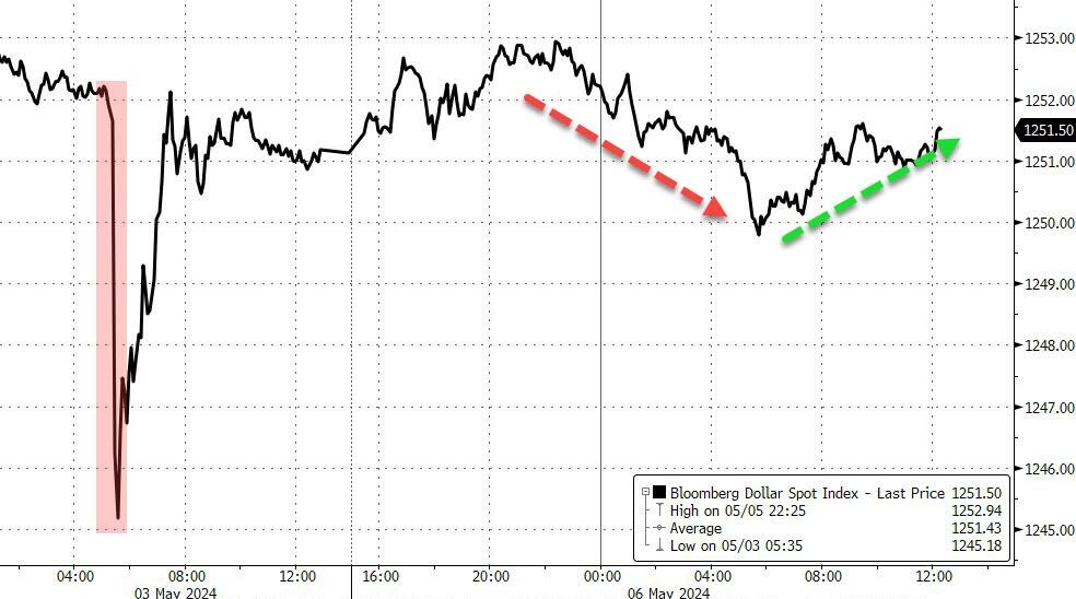 | April NFP 175k, 240k expected; prior 315k from 303k; Manufacturing 8k, 5k expected, prior -4k from 0k; Unemployment Rate 3.9%, 3.8% expected and prior; Wages 0.2% m/m & 3.9% y/y, 0.3% m/m & 4% expected; Workweek 34.3, 34.4 expected and prior; Labor Force Participation Rate 62.7% as exp & prior Household Survey: Employed +25k; Unemployed +63k; Not in Labor Force +94k; Part Time for Noneconomic Reasons (Voluntary) -649k; Part Time for Economic Reasons +161k (Could only find Part Time 135k) https://www.bls.gov/news.release/pdf/empsit.pdf Establishment Survey: Health care and social assistance +87k (healthcare +56k.2); Government added only 8k, a huge trend change. Retail +20.1k, Trade & Warehousing +21.8k April 2023 NFP seasonal adjustment +283k; April 2024 NFP seasonal adjustment +270k https://www.bls.gov/news.release/empsit.t17.htm Birth/Death jobs for April 2024 are 363k. They were +368k in April 2023. https://www.bls.gov/web/empsit/cesbd.htm @profplum99: Just the most egregious Birth/Death (Chart)… it’s not us, it’s just that we aren’t entrepreneurial enough. This is why many believe ARTIFICIAL Information is in a bubble… https://twitter.com/profplum99/status/1786406726440202529 Stocks and bonds rallied sharply on the soft NFP. It’s funny how one soft economic data point unleashed strident braying about rate cuts. Of course, it is clear that Powell et al are dying to cut rates to aid Biden. April S&P Global US Services PMI and Composite PMI 51.3, 51.0 expected, 50.9 prior April ISM Services Index 49.4, 52 expected; 51.4 prior; Prices Paid 59.2, 55 expected, 53.4 prior; Employment 45.9, 49 expected, 48.5 prior; New Orders 52.2, 54.5 expected, 54.4 prior It’s a good thing that Powell cannot or will not recognize STAGFLATION. It will make it easier for Jerome and his ilk to ignore and dismiss an inflationary recession – unless DJT wins and jettisons Jerry! Fangs soared on Apple humongous/record $110B buyback. ESMs traded sharply on Apple when Asia opened; but they traded sideways until they exploded higher two minutes before the official 8:30 ET release of the April Employment Report. ESMs hit a daily high of 5166.75 near 10:00 ET. They then sank to 5126.75 at 11:09 ET. ESMs then steadily rallied until 14:30 ET. ESMs then did a very slow rollover that lasted into the NYSE close. Why did Powell go so dovish on Wednesday? Fear about Trump turned to panic after reports appeared that said Trump was looking to restructure the Fed. And it wasn’t just Fed members! Trump advisors are considering plans to dramatically revamp the Fed, WSJ report says 4/28/24 That plan, which the Journal report described as highly secretive, is part of a 10-page document that suggests Trump — if elected — would be consulted on interest rate decisions. In addition, the Treasury Department would be used as an added check and balance to oversee the Fed’s bond-buying activities. Along with those proposals, the draft contends that Trump could remove current Fed Chair Jerome Powell from office and require that Fed policy be aligned with the administration’s goals… https://www.cnbc.com/2024/04/26/trump-advisors-are-considering-plans-to-dramatically-revamp-the-fed-wsj-report-says.html Few people believe the Fed is independent of politics. Fewer people believe the Fed is independent from big banks and Wall Street. If inflation persists, let alone if it worsens, the masses will demand that the Fed is restructured – and disciplined. The odds are slim that Congress will go along with Trump’s scheme to control the Fed. However, the odds are extremely high that he will jettison top Fed officials and incessantly harangue the Fed. Goolsbee Says Fed Could Better Convey How It Responds to Economy – BBG Saturday Fed could consider linking officials’ economic, rate forecasts (Cuz forecasts have been crap!!) NY Fed’s Williams suggests inflation is still headed lower (Desperately wants to cut rates) Fed officials could consider linking together, anonymously, each participant’s forecasts for the various economic indicators, Goolsbee said. Doing so would better communicate how certain economic outcomes might impact policy, he argued. “Over time, more would be revealed about reaction functions as observed changes in the economic environment show the relationships between participants’ views on the outlook and appropriate policy,” he said… (NY Fed Pres Willliams): “As we continue to move closer to our 2% longer-run inflation goal, I’m confident that we have the foundation of theory and experience to guide us in restoring price stability,” he said. “We are committed to getting the job done.” Goolsbee and Williams didn’t comment on the outlook for interest rates. https://www.bloomberg.com/news/articles/2024-05-03/goolsbee-says-fed-could-better-convey-how-it-responds-to-economy Williams is clearly in the camp that is dying to cut rates. Goolsbee is employing jabberwocky to assure the public that the Fed will soon be able to make more accurate forecasts. “Send in the clowns.” Janet Yellen Says It’s ‘Almost Impossible’ For First-Time Homebuyers to Enter Housing Market https://finance.yahoo.com/news/janet-yellen-says-almost-impossible-150015396.html @CollinRugg: Biden economic advisor Jared Bernstein turns into bumbling mess after he’s asked why the government borrows money if they can just keep printing it. We are so screwed. Question: They print the dollar. So why does the government even borrow? Bernstein: Well, so the, I mean again, some of this stuff gets some of the language that the mmm, some of the language and concepts are just confusing… The government definitely prints money and then it lends that money by, by selling bonds. Is that what they do? They, they, they, yeah, they, they, they sell bonds… So, yeah, I, I, I guess I’m just, I don’t, I can’t really talk. I don’t, I don’t get it. I don’t know what they’re talking about. https://twitter.com/C
