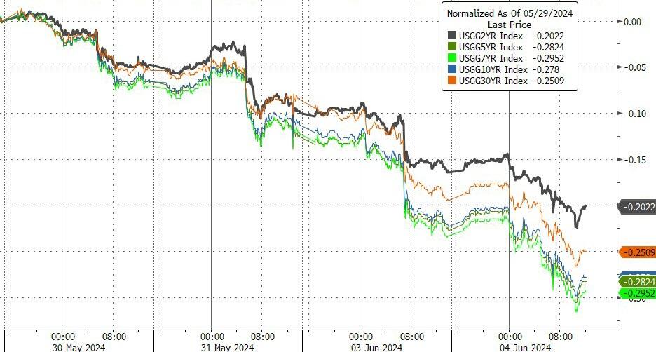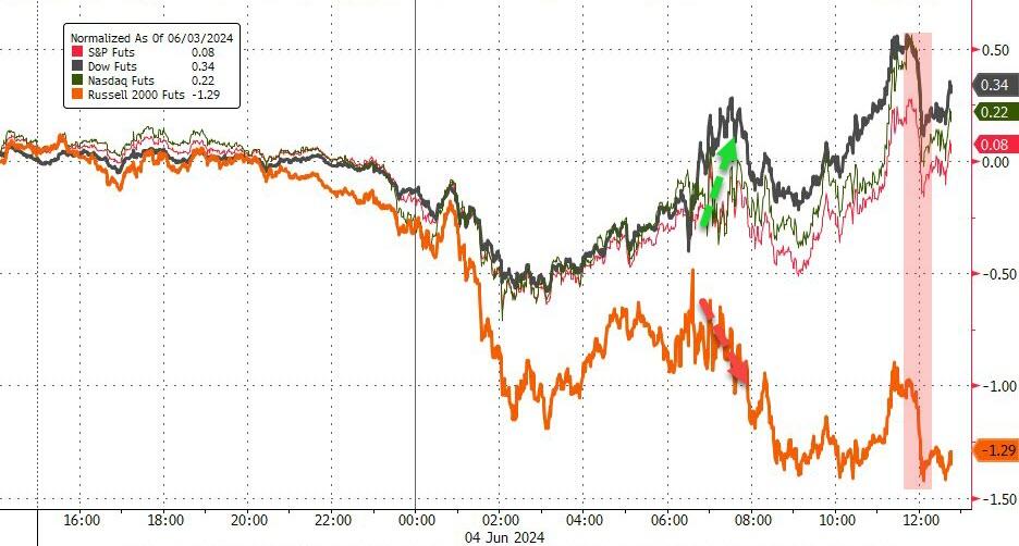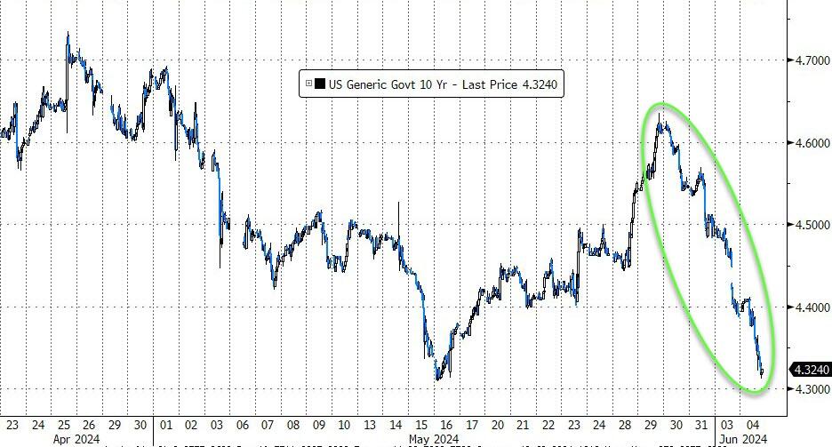 | GameStop Shares Double After ‘Roaring Kitty’ Posts $180 Million Bet Shares of GameStop Corp. jumped as much as 100% in early premarket trading in New York after the Reddit account affiliated with ‘meme’ stock trader Keith Gill, aka Roaring Kitty… On line two, he bought 120,000 call options worth $65.7 million, expiring on June 21… https://www.zerohedge.com/markets/gamestop-shares-double-after-roaring-kitty-posts-174-million-bet And to think that money managers must convince their clients that the US equity market is… US ISM Manufacturing for May: 48.7; 49.5 expected, 49.2 priorPrices Paid: 57.0, 59 expected, 60.9 priorNew Orders: 45.4, 49.4 expected, 49.1 priorEmployment: 51.1, 48.5 expected, 48.6 prior USMs rallied sharply on the weak May ISM Manufacturing survey. Atlanta Fed: The GDPNow model estimate for real GDP growth (seasonally adjusted annual rate) in the second quarter of 2024 is 1.8 percent on June 3, down from 2.7 percent on May 31. After recent releases from the US Census Bureau and the Institute for Supply Management, the nowcasts for annualized second-quarter real personal consumption expenditures growth and real private fixed investment growth declined from 2.6 percent and 3.1 percent, respectively, to 1.8 percent and 1.5 percent. (Two weeks ago, the GDPNow model estimated Q2 GDP at 4.1%!) https://www.atlantafed.org/cqer/research/gdpnow ESMs rallied smartly during the first 2.5 hours of Nikkei trading and then traded sideways, with a slight upward bias, until they hit a peak of 5313.25 at 2:38 ET and then sank to 5295.00, and went slightly negative, at 4:02. ESMs then steadily rallied until they formed a triple top at 5313.25 near the NYSE opening. After the May US ISM Manufacturing survey was released, ESMs sank to 5295 at 10:44 ET. After a moderate rebound on conditioned buying, defensive asset allocators got busy. ESMs tumbled to 5246.75 at 13:11 ET. Because it was the afternoon and beaucoup traders were trapped on the long side, it was time to buy for the late manipulation and start-of-June buying near or at the NYSE close. ESMs jumped to 5276.50 at 13:44 ET and then stair stepped up to 5286.25 at 13:21 ET. They then went flat until they broke higher at 15:55 ET on more manipulation. ESMs hit 5300.75 at 16:00 ET. NIH scientists made $710M in royalties from drug makers — a fact they tried to hide During the pandemic, the American people started to feel that Big Government was very cozy with Big Pharma. Now we know just how close they were. New data from the National Institutes of Health reveal the agency and its scientists collected $710 million in royalties during the pandemic, from late 2021 through 2023. These are payments made by private companies, like pharmaceuticals, to license medical innovations from government scientists… https://nypost.com/2024/06/02/opinion/nih-scientists-made-710m-in-royalties-from-drug-makers-a-fact-they-tried-to-hide/ Damning new report finds China lab leak most likely source of COVID-19 — and blames US for pumping millions into the dangerous research (Report by Alina Chan, a Harvard and MIT molecular biologist…) https://nypost.com/2024/06/03/us-news/us-funded-covid-lab-leak-in-china-damning-report-finds/ Positive aspects of previous session Bonds rallied sharply; Fangs rallied because Nvidia soared 4.9% Oil and gasoline tumbled; but copper rallied sharply The afternoon manipulation appeared and saved trapped longs Negative aspects of previous session Stocks got hammered, until the afternoon, on defensive asset allocation Ambiguous aspects of previous session How active will defensive asset allocators be in the coming days? First Hour/Last Hour Action [S&P 500 Index]: 1st Hour from NYSE Open: Down; Last Hour: Up Pivot Point for S&P 500 Index [above/below indicates daily trend to traders]: 5273.28 Previous session S&P 500 Index High/Low: 5302.11, 5234.32 US buys 3 million barrels of oil for Strategic Petroleum Reserve http://reut.rs/3yJ1CIy @ReutersBiz: Advanced Micro Devices unveiled its latest artificial intelligence processors and detailed its plan to develop AI chips over the next two years in a bid to challenge industry leader Nvidia. More here: https://t.co/TUGpOmibsU Eyepopping Factory Construction Boom in the US: Semiconductors, Auto Industry, and Everyone Else – Companies plowed $18.4 billion in April into the construction of manufacturing plants in the US, a seasonally adjusted annual rate of construction spending of a record $212 billion, according to the Census Bureau today. This was up by 140% to 200% from the range in 2015 through mid-2021… https://wolfstreet.com/2024/06/03/eyepopping-factory-construction-boom-in-the-us-semiconductors-auto-industry-and-everyone-else/ @ABCNewsLive: Israeli forces confirmed the deaths of four more hostages: Haim Perry, Yoram Metzger, Amiram Cooper and Nadav Popplewell. The four hostages likely died a few months ago in Khan Yunis in southern Gaza, an IDF spokesman said. Kirby Throws Own US Military Under the Bus While Trying to Defend Israel Kirby essentially threw the US military under the bus by suggesting American troops have done worse things than what Israel’s military is doing in Gaza… https://www.zerohedge.com/political/watch-kirby-throws-own-us-military-under-bus-while-trying-defend-israel Mexico elects its first female president, a leftist climate scientist – Sheinbaum will start her six-year term Oct. 1, succeeding her mentor, President Andrés Manuel López Obrador. https://justthenews.com/world/mexico/mexico-elects-its-first-female-president-leftist-climate-scientist Today – Despite upward seasonal bias from Monday and start-of-June, stocks sank on aggressive defensive asset allocation. The key for the coming days will be the presence or absence of defensive asset allocators. Of course, the usual suspects will increase their braying for a rate cut. But the Fed is vexed by the STAGFLATION (and US Fang Bubble) that Jerome will not or cannot admit exi