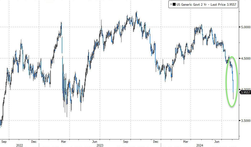 Today was the biggest drop in 2Y yield since Dec 2023 (Powell pivot) and the biggest weekly drop since March 2023 (SVB collapse).