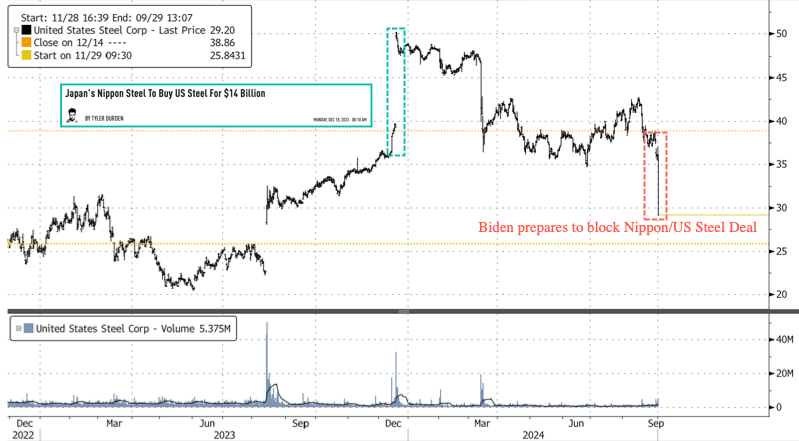In markets, shares of US Steel are up 3% after plunging 25% on Wednesday due to media reports suggesting Biden is preparing to block the deal.