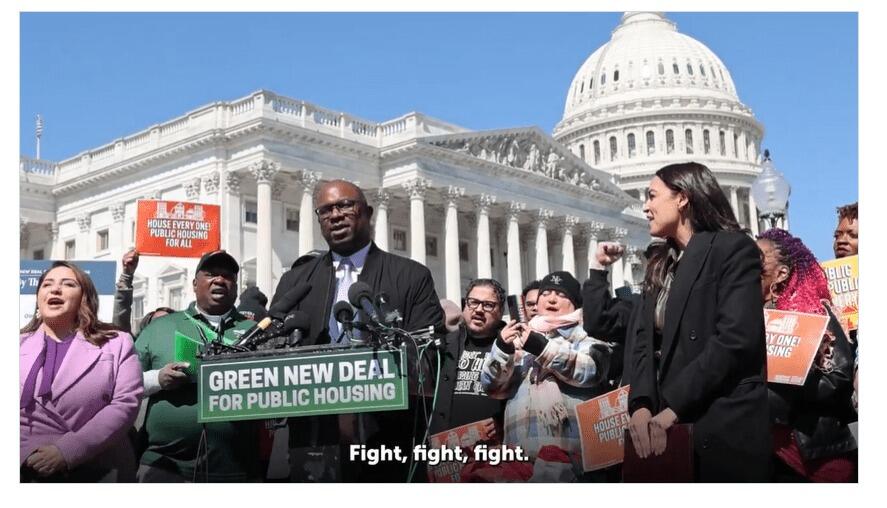AOC says the bill would invest up to $234 billion over a decade into “weatherizing, electrifying, and modernizing our public housing”.
