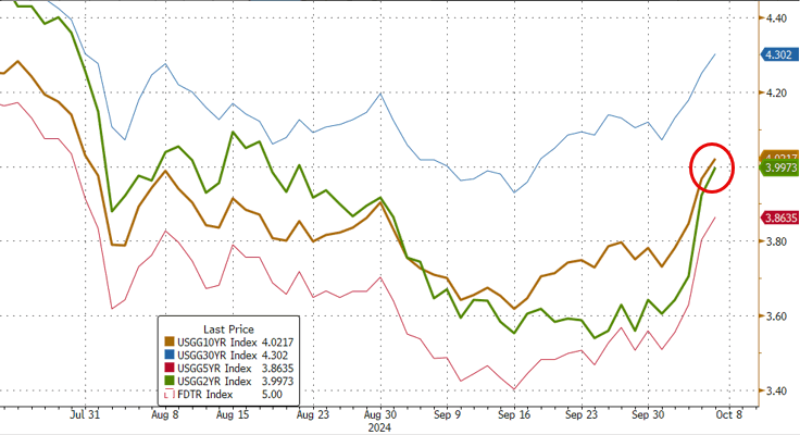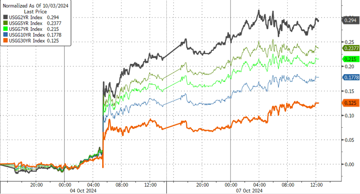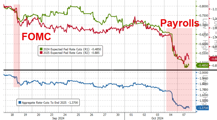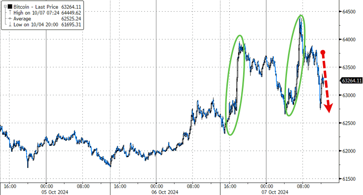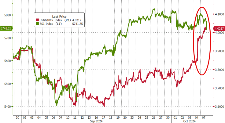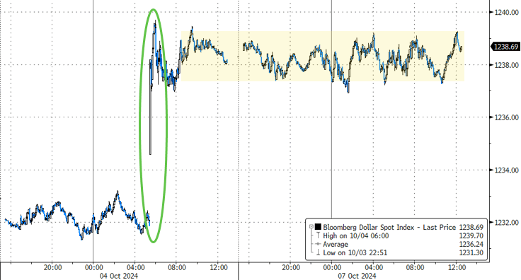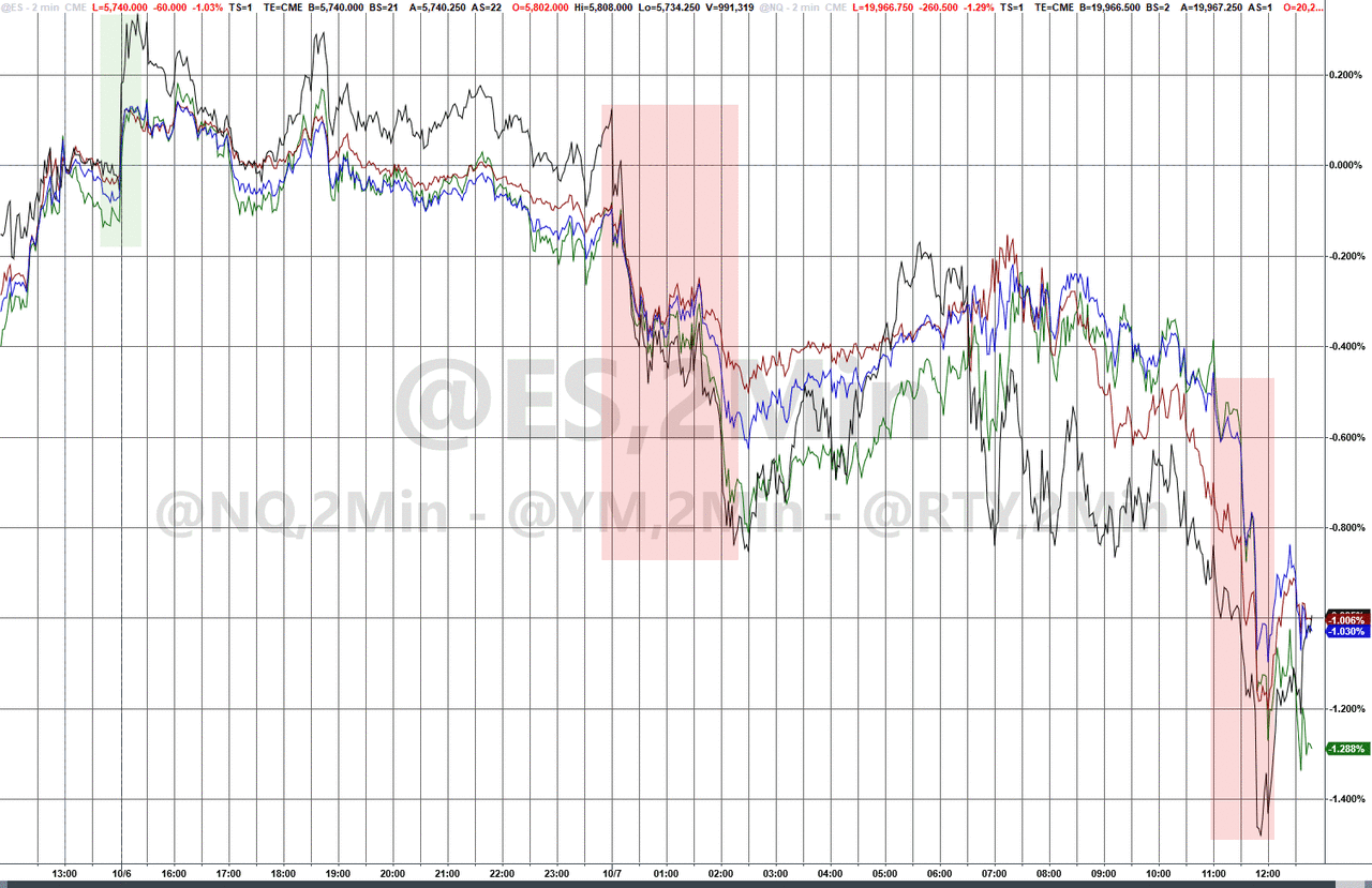 | The much stronger than expected September Employment Report, including wages, makes the Fed look foolish and like Team Obama-Harris concubines. (‘Whores’ is appropriate. King’s College: “Concubinage is a state of cohabitation that lacks the sanctions of marriage…”) Obama Economic Director Larry Summers @LHSummers: Today’s employment report confirms suspicions that we are in a high neutral rate environment where responsible monetary policy requires caution in rate cutting. With the benefit of hindsight, the 50-basis point cut in September was a mistake, though not one of great consequence. With this data, “no landing” as well as “hard landing” is a risk the federal reserve has to reckon with. Nominal wage growth remains well above pre-COVID levels and it does not appear to be decelerating. NFP 254k, 150k expected, August revised to 159k from 142k; July revised to 144k from 89k; Mfg. -7k, Wages 0.4% m/m & 4.0% y/y, 0.3% m/m & 3.8% y/y expected. But wait! The BLS concocted the stronger than expected NFP by reducing the September seasonal adjustment from -178k in 2023 to -72k for September 2024. That’s +106k fictious jobs! (Table B-1) https://www.bls.gov/news.release/empsit.t17.htm Here’s the math of the deceit: September 2023 NFP NSA 156,845 adjusted to 156,667, -178k adjustment; September 2024 NFP NSA 159,177 adjusted to 159,105, -72k adjustment. The BLS’s hokey Birth/Death Model is -128k for September 2024. It was -111k for Sept. 2023. That’s 17k fewer jobs than in 2023. 106k NFP from SA -17k B/D jobs = net of +89k jobs fictitious jobs. Leisure & Hospitality +78k with Food services & drinking places +69.4k; Gov’t +31k; Retail +15.6; Construction +25k; Healthcare +45.2k; Social assistance +26.5k; Workweek 34.2, 34.3 exp & prior https://www.bls.gov/news.release/empsit.t17.htm Unemployment Rate 4.1%, 4.2% expected and prior; Employed +430k, Unemployed -281k; Labor Force Participation Rate 62.7% as expected and prior; Employment-Population Ratio +0.2 to 60.2%. https://www.bls.gov/news.release/empsit.a.htm In the Household Survey, Table A-8, government jobs soared 785k SA, the biggest gain on record. https://www.bls.gov/news.release/empsit.t08.htm Multiple job holders hit an all-time high of 8.659m. https://cms.zerohedge.com/s3/files/inline-images/multiple%20jobholders%20oct%2024.jpg?itok=T_TYj6c0 Chicago Fed President, Obama BFF, and chief Fed political lackey said the strong report does NOT change his forecast of more rate cuts because it’s only one report. This is a signal to Wall Street to keep buying stocks, the Fed will have your back – at least until the election. Stanley Druckenmiller: “I hope the Fed is not trapped by forward guidance the way they were in 2021…GDP above trend, corporate profits strong, equities all-time high, credit very tight, gold new high. Where’s the restriction?” https://finance.yahoo.com/news/druckenmiller-wary-fed-next-move-140204791.html @DeItaone: SEPTEMBER PAYROLLS COULD BE REVISED LOWER – The surprising increase in payrolls is likely to be revised lower, Pantheon’s Samuel Tombs says in a note about today’s 254,000 print, an increase from August’s 159,000 that beat estimates of 150,000. The spike “goes against the grain of a wide range of indicators pointing to a continued pullback in hiring,” Tombs says, adding that only 62% of the businesses in the sample filed responses on time for the estimate, down from 68% a year ago. “We think that small businesses are disproportionately late responders and are cutting back on hiring more than large businesses.” Payroll Survey responses have been collapsing: ~83% in 2016, now 62%! https://x.com/MauiBoyMacro/status/1842258946159194484/photo/1 A reporter asked Biden about Sen. Rubio’s claim that the September jobs report was fake. Biden: “I am going to be very careful here… The jobs numbers… are real; they are sincere.” https://x.com/TrumpWarRoom/status/1842268045970133265 @Geiger_Capital: You’re witnessing the best economy $4.2 Trillion in new debt in 15 months can buy. https://x.com/Geiger_Capital/status/1842191100834205847 Global Food Prices Jump Most In 18 Months as Supermarket Inflation Storm Worsens The Food and Agriculture Organization of the United Nations’ Food Price Index, which tracks the international prices of a basket of globally traded food, averaged 124.4 in September, up 3% from August and 2.1% higher versus the same month one year ago… https://www.zerohedge.com/commodities/global-food-prices-jump-most-18-months-supermarket-inflation-storm-worsens When the September Employment Report was released, someone immediately drove ESZs 37 handles higher to a daily peak of 5803.25 at 8:56 ET. Sellers then took over; ESZs sank to 5749.50 at 10:28 ET. ESZs and stocks then commenced a stair-step rally that accelerated with the final hour manipulation. ESZs hit a new daily high of 5804.75 at 15:57 ET. Bonds declined sharply on Friday. It’s harder to rig the bond market and it does NOT garner headlines on evening news shows like the stock market does. JPMorgan CEO Jamie Dimon, who had repeatedly stated that he would NOT endorse anyone for POTUS, denied a Trump Truth Social post that Dimon endorsed Trump. Positive aspects of previous session Stocks rallied, led by Fangs and trading sardines; AMD +5.1% near close; TSLA +3.91%; S&P new high Negative aspects of previous session Oil & gasoline rallied sharply again; USZs were -1 21/32 at 8:28 ET and bounced modestly later Ambiguous aspects of previous session What are the ramifications of Japan already halting its rate cuts? First Hour/Last Hour Action [S&P 500 Index]: 1st Hour from NYSE Open: Down; Last Hour: Up Pivot Point for S&P 500 Index [above/below indicates daily trend to traders]: 5735.70 Previous session S&P 500 Index High/Low: 5753.21; 5702.83 FEMA whistleblower details ‘waste’ of taxpayer funds and staff waiting in hotels during Hurricane Helene – Whistleblowers said that FEM