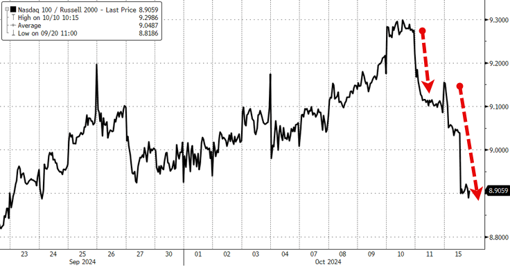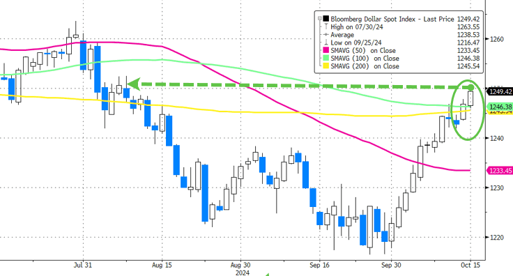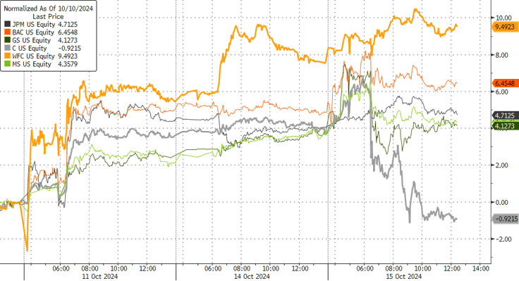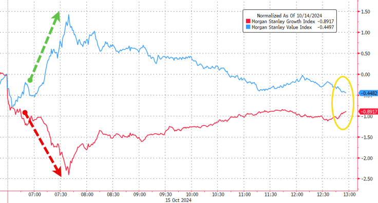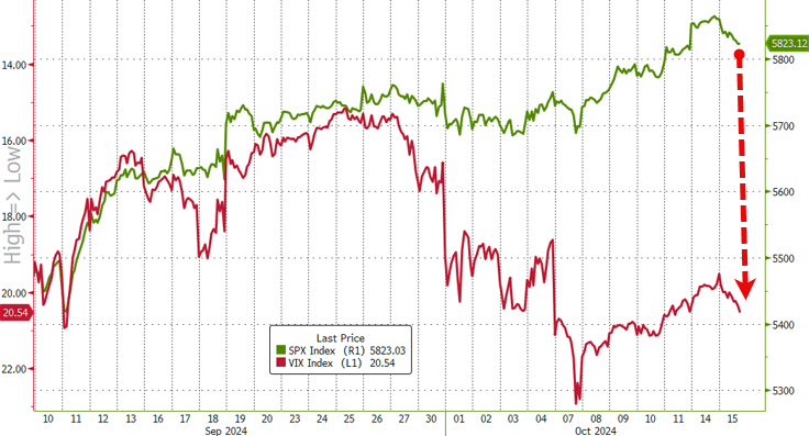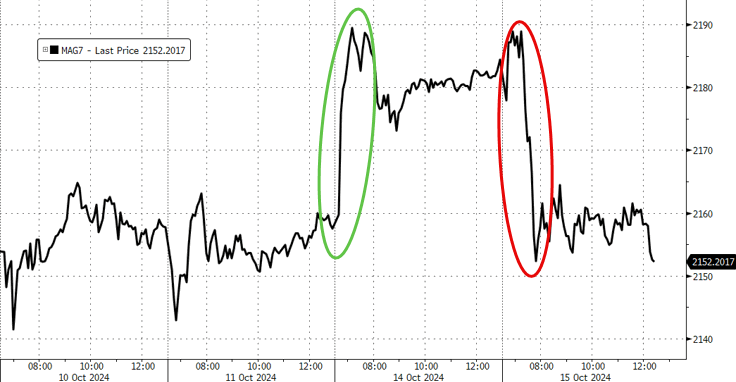 | ESZs traded modestly to moderately lower from the Nikkei opening until they turned positive near 3:30 ET. Asian traders were disappointed with the latest Chinese stimulus package. ESZs plodded higher until they exploded higher on the NYSE opening. ESZs eventually hit a peak of 5903.50 at 10:37 ET. After a retreat to 5888.75 at 10:58 ET, ESZs began another rally leg that took ESZs to a daily high of 5912.25 at 14:42 ET. After a modest retreat, the last hour rally commenced on schedule. ESZs hit a new daily high of 5918.50 at 15:49 ET. Fangs rallied sharply early on Monday. Traders, operators, and even some investors pour into these stocks for expected great results. Unfortunately, the usual suspects got too jiggy too fast for Fangs. The NY Fang+ Index his its daily high (11955.471) at 10:00 ET. The index then sank to a daily low of 11795.335 at 11:44 ET. After a modest rebound, the NY Fang+ Index traded in a tight range. Nvidia led the Fang rally but hit its peak of +3.56% at 10:37 ET. CrowdStrike, with sank as much as 3.5%, pulled Fangs lower. CRWD hits its high (323.94) at 9:34 ET and its low (309.60) at 12:38 ET. Fed’s Kashkari: Neutral Rate Likely Higher Now Than Pre-Pandemic – Neutral Rate Will Rise If US Debt Continues to Rise Fed’s Kashkari Says ‘Further Modest’ Cuts Appropriate in Coming Quarters – BBG 9:38 ET Fed Governor Waller sees need for ‘more caution’ ahead when lowering interest rates “Whatever happens in the near term, my baseline still calls for reducing the policy rate gradually over the next year,” he said… “These revisions (Q2 GDP) suggest that the economy is much stronger than previously thought, with little indication of a major slowdown in economic activity,” Waller said. https://www.cnbc.com/2024/10/14/fed-governor-waller-sees-need-for-more-caution-ahead-when-lowering-interest-rates.html @zerohedge: Household allocation to stocks (48%, 15% cash) is the highest since the dot com bubble burst https://x.com/zerohedge/status/1845642401135603789 True Value files for bankruptcy after 75 years, blames weak housing market for plunging sales https://trib.al/OL33xMg Washington Post: Israeli Prime Minister Benjamin Netanyahu has told the Biden administration he is willing to strike military rather than oil or nuclear facilities in Iran. (Oil & gasoline tumbled) Positive aspects of previous session US stocks rallied on Monday and earnings season buying. After soaring early, the NY Fang+ Index declined sharply Negative aspects of previous session USZs were -10/32 at the NYSE close despite the tumble in oil and industrial commodities The NY Fang+ Index sank after an early surge Ambiguous aspects of previous session How big will the latest US equity bubble inflate? First Hour/Last Hour Action [S&P 500 Index]: 1st Hour from NYSE Open: Up; Last Hour: Down Pivot Point for S&P 500 Index [above/below indicates daily trend to traders]: 5853.61 Previous session S&P 500 Index High/Low: 5871.41; 5829.57 China Moves to Tax the Ultra-Rich for Overseas Investment Gains – BBG 20:07 ET Today – Traders, operators, and investors will continue to be bullish until +/- a day near Apple’s results. We noted years ago that trading patterns were being increasingly ingrained due to the proliferation of computerized trading and passive investing/indexing. Historically, the biggest fear factor for bullish traders and hedge funds was when the elephants would raise cash, let alone stampede for the exits. Indexing and passive investing greatly reduces the odds of institutional selling in the markets. This is a major reason why valuations get stretched and remain that way for a long time. Indexing and passive investing will persist, even proliferate, until a protracted bear market punishes those that stay ‘fully invested.’ ESZs are +2.25; NQZs are -2.50; and USZs are +13/32 at 20:42 ET. Expected impact earnings: PNC 3.30, JNJ 2.19, BAC .76, UNH 6.99, WBA .36, GS 7.21, STT 2.12, C 1.31, JBHT 1.39, UAL 3.03 Expected econ data and events: Oct Empire Mfg. 3.6; Sept Budget $35.0B; SF Fed Pres Daly 11:30 ET, Fed Gov. Kugler 13:00 ET S&P Index 50-day MA: 5594; 100-day MA: 5522; 150-day MA: 5403; 200-day MA: 5285 DJIA 50-day MA: 41,204; 100-day MA: 40,333; 150-day MA: 39,850; 200-day MA: 39,460 (Green is positive slope; Red is negative slope) S&P 500 Index (5859.85 close) – BBG trading model Trender and MACD for key time frames Monthly: Trender and MACD are positive – a close below 5033.40 triggers a sell signal Weekly: Trender and MACD are positive – a close below 5434.12 triggers a sell signal Daily: Trender and MACD are positive – a close below 5737.29 triggers a sell signal Hourly: Trender and MACD are positive – a close below 5819.82 triggers a sell signal Trump opens up largest betting lead since days after Biden’s dropout Trump opened up a 10-point lead in the Real Clear Politics betting average on Sunday… https://www.foxnews.com/politics/trump-opens-up-largest-betting-lead-since-days-after-bidens-dropout @kylenabecker: A plagiarism scandal ended the Biden presidential run in 1987. Now one is roiling the Harris campaign… https://x.com/kylenabecker/status/1845914656315207889 Kamala Harris accused of plagiarism in co-authored 2009 book https://trib.al/qO6Uhgy @realchrisrufo: EXCLUSIVE: Kamala Harris plagiarized at least a dozen sections of her criminal-justice book, Smart on Crime, according to a new investigation. The current vice president even lifted material from Wikipedia… https://x.com/realchrisrufo/status/1845847428207145110 @GrageDustin: J.D. Vance just grilled Kamala Harris in front of the Minneapolis third precinct. “If you want a President with their own ideas, vote for Donald Trump. If you want a President who copies their ideas from Wikipedia, vote for Kamala Harris.” That’s going to hurt. https://x.com/GrageDustin/status/1845909333713834116 @JDVance: …I wrote my own book, unlike Kamala Harris, who copied hers from Wikipedia. @redsteez