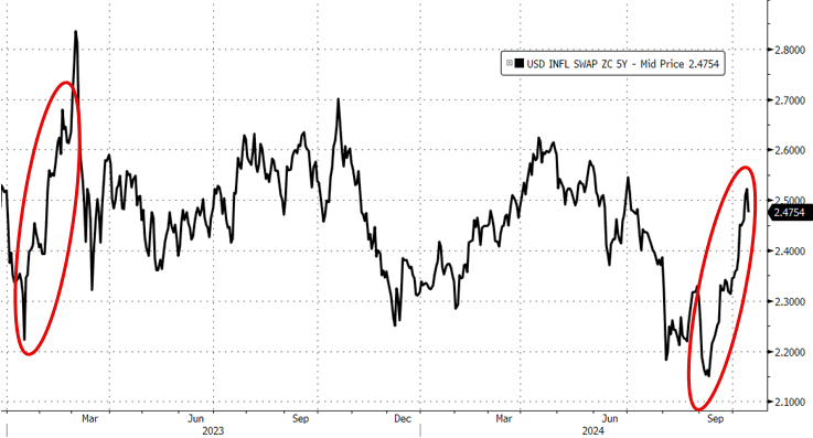 In recent weeks, we have discussed on multiple occasions (here, here and here) how in his desire to get Kamala Harris re-elected by rushing out a jumbo cut before November 5, Fed president Jerome Powell may have triggered the second coming of the Arthur Burns “galloping inflation” Fed, and sure enough recent inflationary prints have certainly raised the threat that the Fed is now aggressively easing even as inflation has not only not been defeated, but is once again rising.