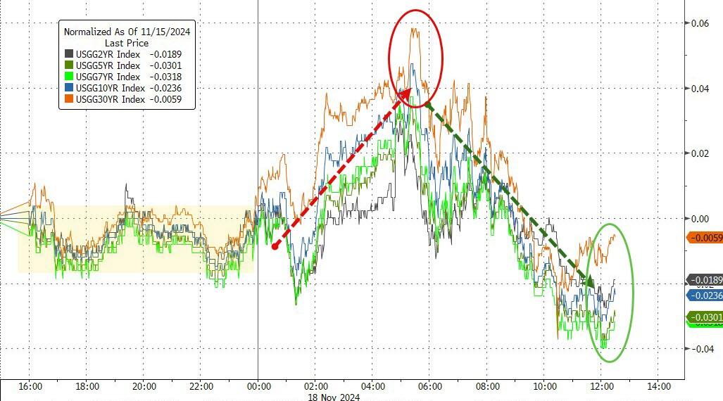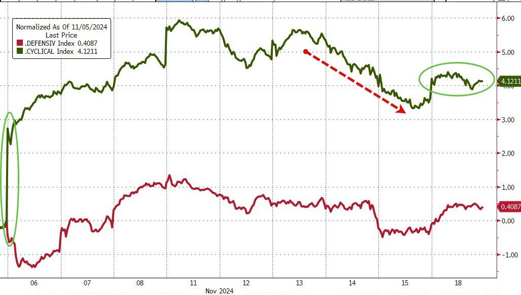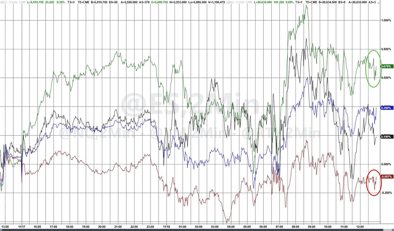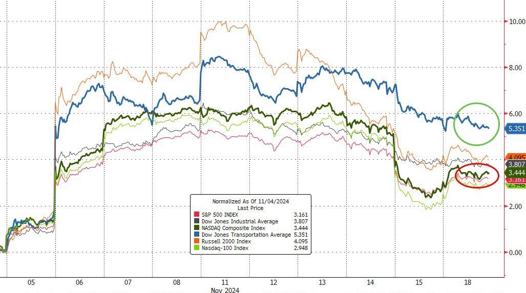 | Leftists Fed presidents surfaced on Friday to shill for rate cuts in coming months. Boston Fed President Susan Collins, ex-Brookings Institute and U of Mich official appointed in 2022, said, ‘I won’t take a December cut off the table.’ She added that a December rate cut isn’t a “done deal,” and she is NOT seeing new price pressures. Collins said she won’t speculate on DJT policies, but said the labor market looks like it’s close to being at full employment. (Then there should NOT be rate cuts!) Chicago Fed President and Obama BFF averred that interest rates will be “a lot lower” in coming months. ESZs traded lower when the Nikkei opened and methodically declined until they hit 5930.75. A slow, labored rally eventually took ESZs to 5953.25 at 8:28 ET. ESZs then resumed tanking; they hit a low of 5885.00 at 12:54 ET. Trades got long for the Friday afternoon rally and expiration roulette. The rally was modest for Friday afternoon and expiry standards. ESZs had an A-B-C rally that pushed ESZs to 5905.25 at 16:02 ET. USZs traded like ESZs except that they made their daily low of 115 11/32 at 9:38 ET. They then rallied to 116 16/32 at 13:08 ET on what appeared to be defensive asset allocation, or asset reallocation, for the 2nd straight day. With stocks at historically extreme valuations and bonds down sharply from the Fed rate cut, some investors are reallocating assets in their portfolios. USZs hit a daily high of 116 21/32, (+3/32) at 13:50 ET, and then fell to 116 at the 16:57 ET. US industrial production sags in October amid continued drag from Boeing strike, hurricanes Industrial output dropped 0.3% last month after a downwardly revised 0.5% decline in September, the Federal Reserve said on Friday. Economists polled by Reuters had forecast industrial production falling 0.3% after a previously reported 0.3% decrease in September… The Fed estimated that the strike depressed industrial production by 0.2 percentage point in October after exerting a 0.3 percentage point drag in September…. http://reut.rs/3UVTrAR @charliebilello: The most absurd number in this week’s inflation report? According to the US Government, the cost of health insurance has declined 29% over the last 2 years and 12% over the last 5 years… https://t.co/rQuXrxVpWs (PE Powell & his ilk make policy on abjectly fraudulent data!) @basso_tom 21:37 PM · Nov 15, 2024: Nikkei futures now down over 1000 points. Shorter term indicators on all my stock indexes on DOWN directions. Be careful out there and enjoy the ride! Positive aspects of previous session Bonds rallied sharply after a morning tumble. Negative aspects of previous session Stocks declined on valuations, pressure from expiring Nov. calls, and probable defensive asset allocation. Commodities and stocks sank on Street recalibrations of Fed rate cut policy. Fangs got hammered because this where speculators play, and they held too many expiring Nov calls. Ambiguous aspects of previous session Is the expected December rate cut off the table? First Hour/Last Hour Action [S&P 500 Index]: 1st Hour from NYSE Open: Down; Last Hour: Up Pivot Point for S&P 500 Index [above/below indicates daily trend to traders]: 5979.65 Previous session S&P 500 Index High/Low: 5915.32; 5853.01 German Chancellor Olaf Scholz and Russian President Vlad Putin held their first phone call in two years. Reportedly Putin told Scholz any Ukraine-Russia peace plan must reflect new territorial realities. @TheChiefNerd: BLINKEN: “President Biden has committed to making sure that every dollar we have at our disposal will be pushed out the door [to Ukraine] between now and January 20th.” https://x.com/TheChiefNerd/status/1857046790744183049 Trump selected ND Gov. Doug Burgum to be Secretary of the Interior. Trump names campaign spokeswoman Karoline Leavitt as White House press secretary https://t.co/GNPQAluvly Trump announces the hiring of Steven Cheung as Director of Communications and Sergio Gor as Director of the Presidential Personnel Office. Rumor has DJT appointing ex-COS to DJT’s Secretary of Defense, Kash Patel, to head the FBI after DJT jettisons the meticulously coiffed Chris Wray. “In his memoir Government Gangsters, he (Patel) has called for a “comprehensive housecleaning” of the Justice Department and the FBI… https://www.news18.com/world/kash-patel-new-fbi-chief-donald-trump-administration-who-is-cia-chief-latest-news-9120391.html CNN: “Kash is frightening at the bureau,” one source familiar with internal deliberations about the role of FBI director… https://www.cnn.com/2024/11/15/politics/kash-patel-donald-trump-fbi-director-christopher-wray/index.html @joelpollak: @CNN is busy painting Kash Patel as some kind of bogeyman. Recall that his original “sin” was exposing how the outgoing Obama administration “unmasked” Americans on surveillance transcripts. Democrats have been hunting him since. He knows where the Deep State bodies are buried. Democrats’ furor over ‘unqualified’ Trump nominees puts Biden’s staffing decisions back in the spotlight https://t.co/dngdEpRyo5 Democrats consider rebrand after Trump win, want to avoid ‘freak show’ party label: report ‘The progressive wing of the party has to recognize… the country’s not progressive, and not to the far left or the far right,’ DNC committeeman Joseph Paolino Jr. told Politico https://www.foxnews.com/media/democrats-consider-rebrand-after-trump-win-want-avoid-freak-show-party-label-report Justice Gorsuch emphasizes need for regulatory reform in discussion with retired Justice Breyer https://t.co/aSM2ngY9yL @MarioNawfal: MAJOR COMPANIES RETURN TO ADVERTISING ON 𝕏 IBM, Disney, Comcast, Discovery, Warner Bros, and Lionsgate Entertainment have reportedly resumed ad campaigns on 𝕏 after an almost year-long boycott… NYC pols demand Whoopi Goldberg apologize for false Staten Island bakery slam — as store is flooded with orders – “The View” co-host sparked w