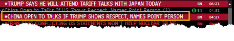 Trump called on China to reach out to him to start negotiations on tariffs. “The ball is in China’s court. China needs to make a deal with us. We don’t have to make a deal with them…what every country wants, what we have – the American consumer… they need our money.” – WH Press Sec. 14:23 ET