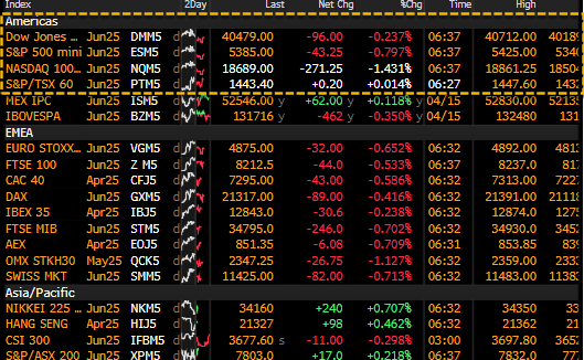 EU Expects US Tariffs to Remain as Talks Make Little Progress – BBG 10:18 ET The EU has offered to remove all tariffs on industrial goods, including cars, but the US has rejected the proposal, and instead suggested that some tariffs could be offset by increasing investments and exports… (But not agricultural goods, tech, and services, which are the US’s largest exports?) The EU has agreed to delay implementing counter-tariffs against the US for 90 days, but has warned that it will impose them if negotiations don’t yield satisfactory results, and is preparing additional counter measures…EU’s trade chief Maros Sefcovic… met for about two hours with US Commerce Secretary Howard Lutnick and Trade Representative Jamieson Greer in Washington… US officials indicated that the 20% “reciprocal” tariffs, which have been reduced to 10% for 90 days, as well as other tariffs targeting sectors including cars and metals would not be removed outright…
