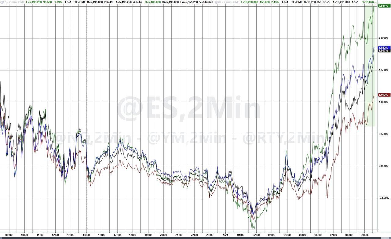 Positive aspects of previous session The NFL Draft begins tonight with Round One! Stocks zoomed higher during early NYSE trading. The Nasdaq 100 soared as much as 4% USMs rallied moderately; the dollar soared; gold got whacked.