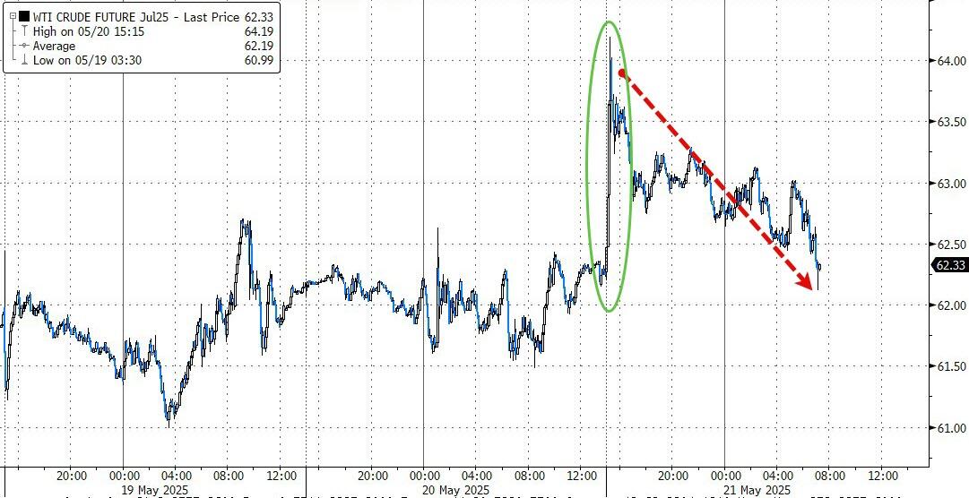 Oil prices also swung wildly in the last 24 hours, spiking over 3% on CNN headlines of imminent Israeli attacks on Iranian nuclear facilities; then plunging on a crude/gasoline inventory builds and then legging further down on the broad market’s derisking…