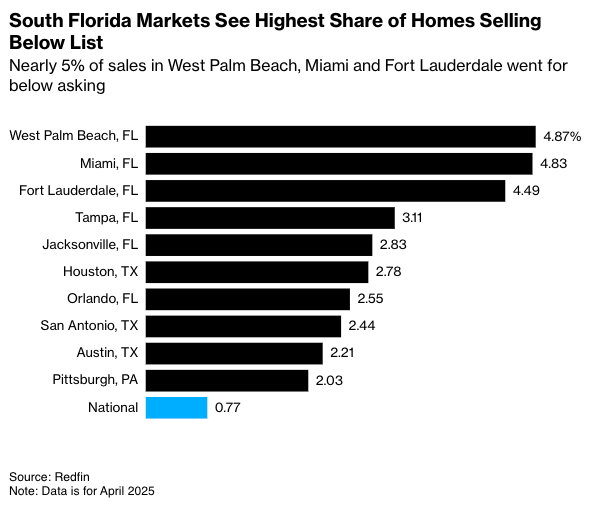 “South Florida is the epicenter of housing market weakness in the United States,” said Redfin analyst Chen Zhao, as quoted by Bloomberg.
