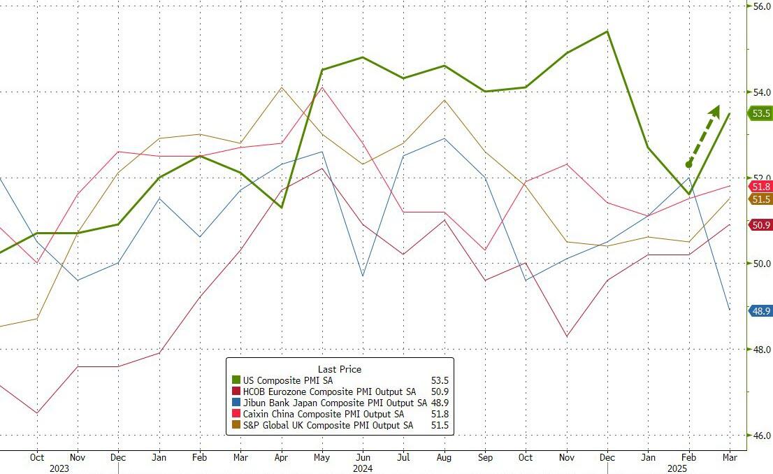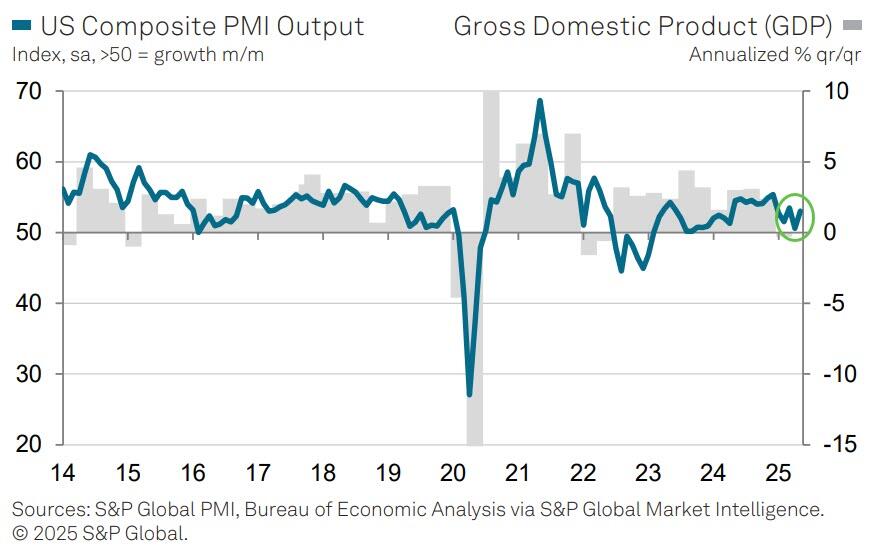 “The PMI is so far indicating annualized GDP growth barely above 1% in the second quarter, so avoiding recession but adding to our expectation of only modest GDP growth in 2025 of just 1.3%.”