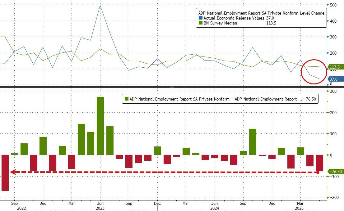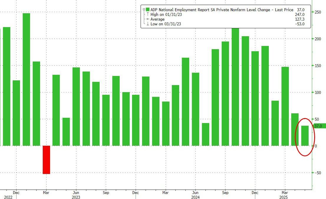 5 standard deviation miss on the generally bullish ADP private jobs report