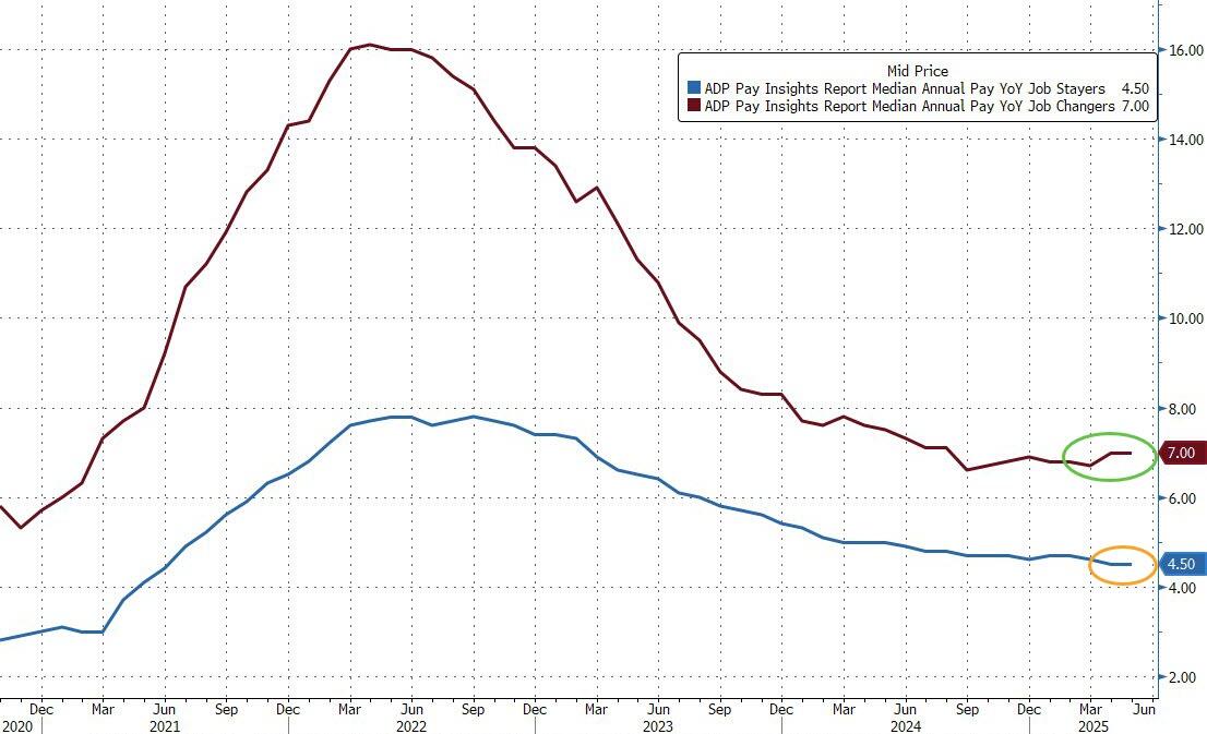 “ADP Pay growth, however, was little changed in May, holding at robust levels for both job-stayers and job-changers.”