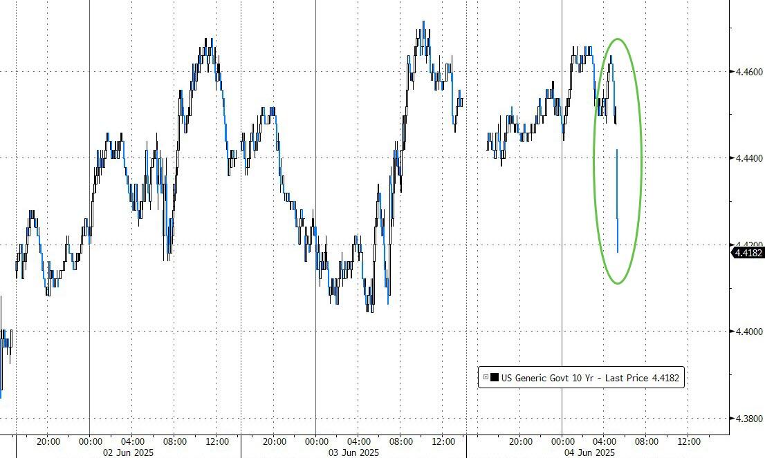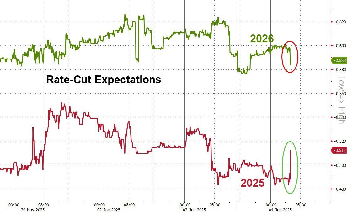 - ISM Services tumbled to 49.9 in May, from 51.6 (and well below the expectation of 52.0) – lowest since June 2024
