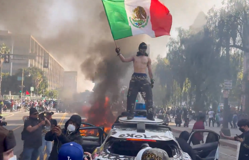 The Administration is saying that that is precisely what is unfolding in California, where mobs attack vehicles and trap federal personnel.