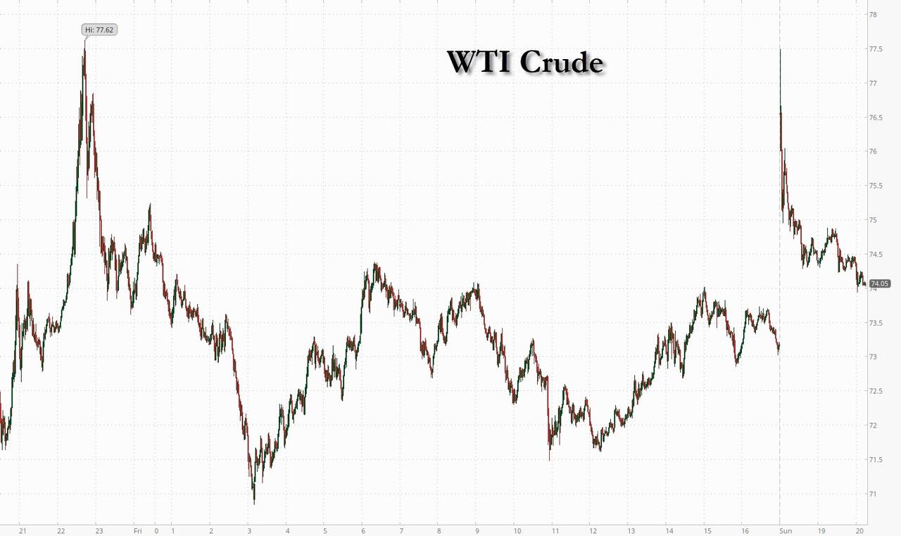 ESMs quickly fell to 6000.00, -31.50 just after the opening on Sunday night. WTI oil hit 77.49, +5.51, on the opening. ESMs jumped to 6038.00 at 18:44 ET; WTI oil fell to 74.29. Oil longs and ESM shorts are now shorting their pants. If ESMs don’t sink, there could be a titanic short squeeze.