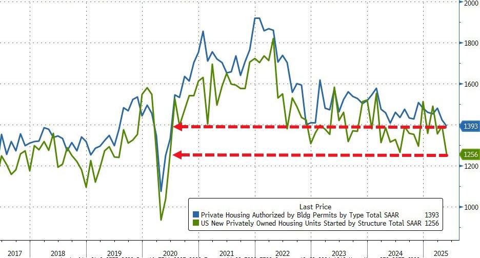 Housing Starts & Permits Plunge To Weakest Since COVID Lockdowns