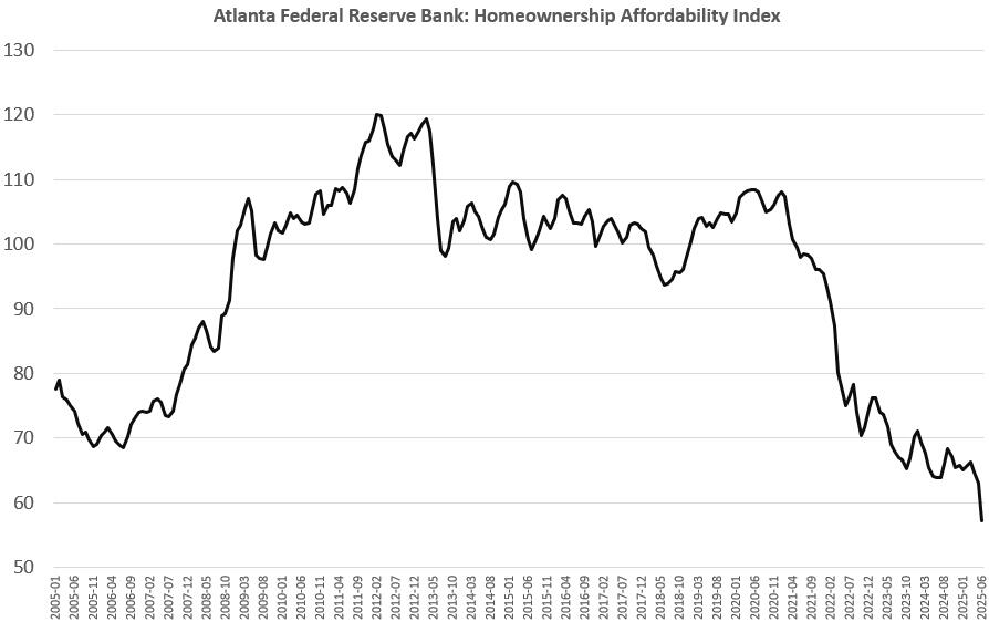 It is not surprising that, as home prices increased in the wake of the covid panic’s runaway monetary inflation, the Atlanta Fed’s affordability index plummeted to historic lows.
