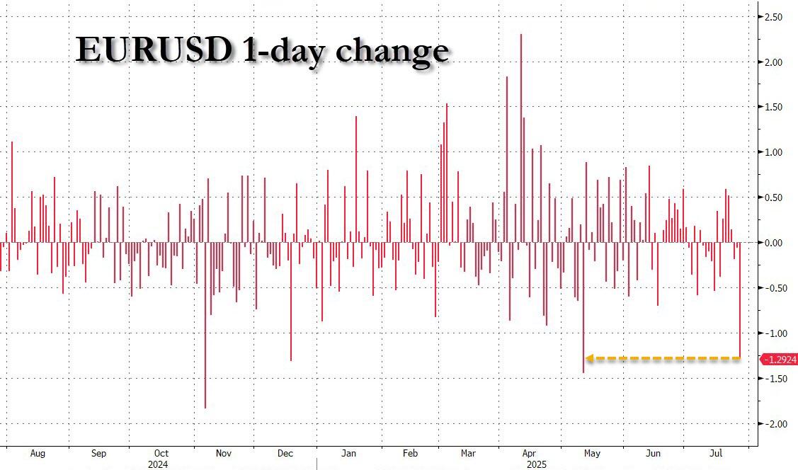 The dollar surged (on EUR weakness) as trade deals got done…
