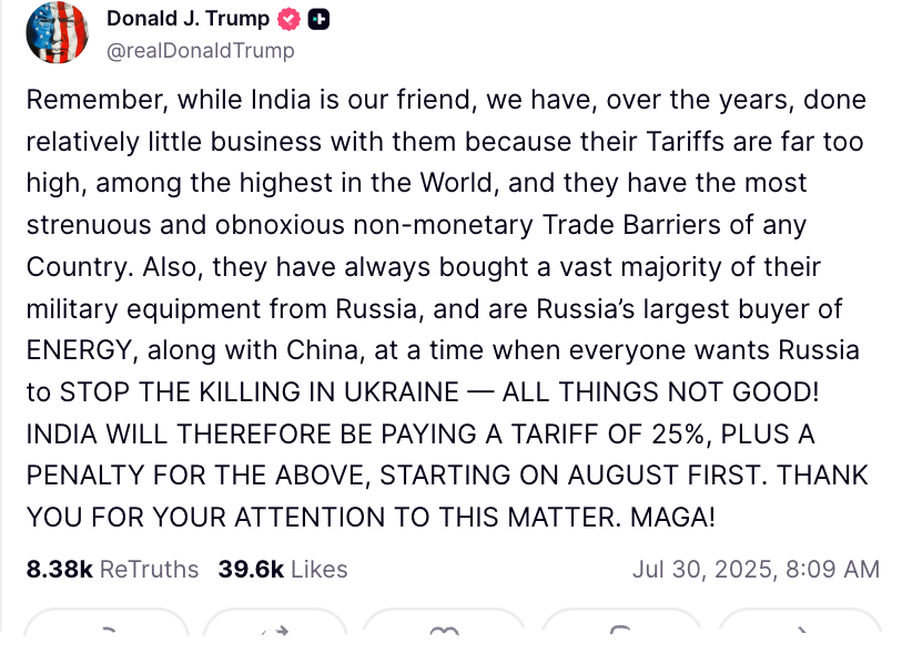 But as we exit the month, tariffs remain in focus even as much progress has been made in establishing new trade regimes between the US and a range of trade partners, including China, Japan, Europe, and the UK.
