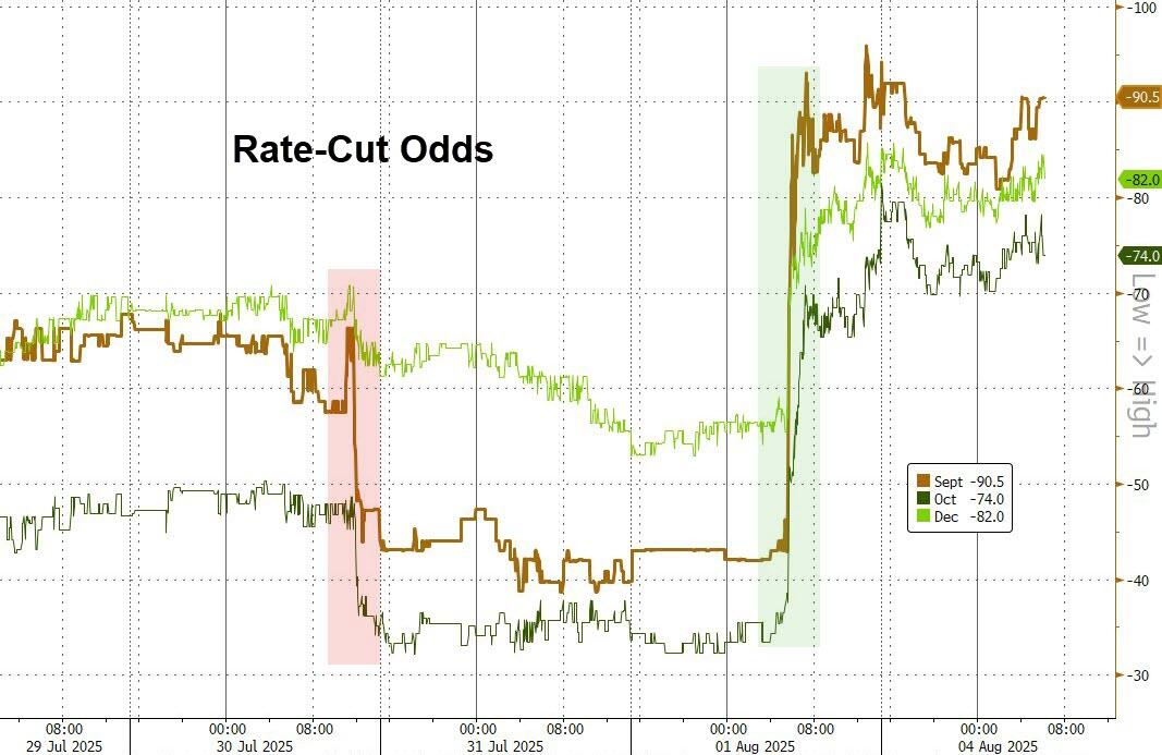 September is now pricing at over 90% odds of a cut and The Fed hates to surprise the market. So either FedSpeak will talk down the labor data as an outlier (transitory) or they are going to really struggle to apolitically NOT cut next time they meet.