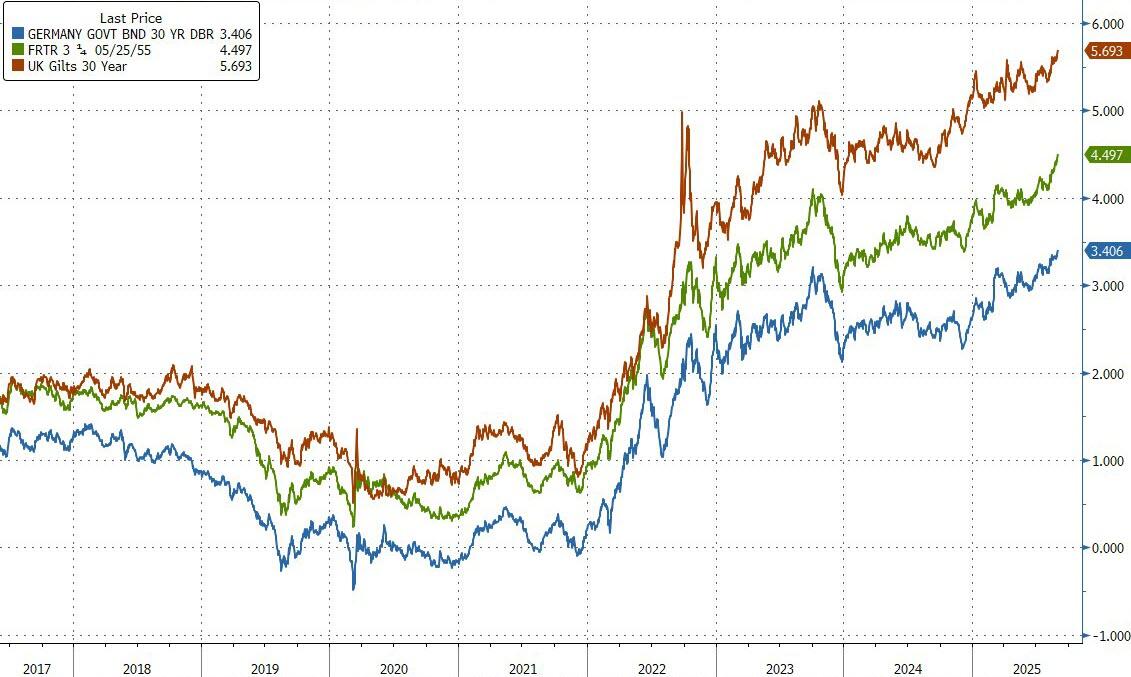 | The London Metal Exchange delayed its trading start in Asia by 90 minutes on Wednesday, to 9:30 am Beijing time from 8:00 am. The LME did not give a reason for the delay. Pundits wondered if ‘someone had margin trouble’ and/or it was related to gold. December gold hit 3640.10 (+47.90) at 14:14 ET. Global bond selloff spreads to Japan, gold hits record high Yields on 30-year Japanese government bonds rose to an all-time high of 3.29 percent on Wednesday, (later hit 3.3%) while 20-year yields reached their highest since 1999… https://www.france24.com/en/live-news/20250903-japan-s-long-term-borrowing-costs-gold-hit-record-highs JOLTS Job Openings sank to 7.181m (7.38m expected) from a revised 7.357m (from 7.437m) in July. The Layoff Level is 1.808m, 1.639m expected. Even worse, June was revised to 1.796m from 1.604m. Table A. Job Openings: Health Care & Social Assistance -181k, Arts, Entertainment, & Recreation -62k, Leisure & Hosp -47k, Government -38k, and Mining and Logging -13k; Construction +64k, Mfg. +41k https://www.bls.gov/news.release/jolts.a.htm @sentimentrader: The Wall Street Journal noted that the yield spread between the 2-year Treasury note and 30-year Treasury bond has steepened to the widest point in several years. The last two times this yield curve cycled from inversion to a spread of +1.25%, it coincided with the two most wicked bear markets in generations. Since the inception of the curve, those were the only two signals that preceded negative returns. https://x.com/sentimentrader/status/1963210368190403040 @MauiBoyMacro: It’s actually the last four times this happened, but who’s counting. There was a significant defensive asset allocation or stock-bond rebalancing on Wednesday. USZs (December ‘Z’ is now the front month for debt futures) hit a daily low of 113 1/32 at 3:20 ET and a high of 114 22/32, +1 8/32, at 13:20 ET. Near 11:00 ET, the DJIA and DJTA were down modestly while the NY Fang+ Index was up sharply on Google, which rallied as much as 9.2% after a judge halted a breakup of Google. Judge Amit Mehta; “The emergence of GenAI changed the course of this case.” Apple rallied as much as 3.5%. It gets ~$20B per year for making Google search the default on iPhones. ESUs opened sharply higher on Tuesday night but quickly commenced a decline that ended with a daily low of 6425.50 at 1:45 ET. ESUs then rallied sharply, hitting 6459.50 at 7:07 ET. Selling pushed ESUs down to 6437.75 at 10:13 ET. The usual suspects then aggressively bought the dip; ESUs soared to a daily high of 6464.25 at 11:05 ET. The liquidation for the 11:30 ET Europe close was robust. After sinking to 6443.00 at 11:31 ET, the post-European close contra-move took ESUs to 6451.75 at 11:40 ET. Alas, patient sellers were ready. ESUs fell to 6436.00 at 12:52 ET. After a rebound to 6450.50 at 13:17 ET, ESUs dropped to 6426.50 at 14:39 ET and then traded in a 7-handle range until a blatant manipulation forced ESUs to 6459.50 at 16:00 ET. USZs rolled over near 15:00 ET. This implies the buy bonds/sell stocks entity or entities exited the market. This enabled the last-hour ESU manipulation. The blatant, illegal late ESU manipulation, Central Time Fed ‘Beige Book’ economic report cites declining growth, rising prices and slow hiring “All District reports indicated that higher tariff rates were putting upward pressure on costs and prices.” https://www.nbcnews.com/business/economy/fed-beige-book-economic-report-cites-declining-growth-rising-prices-sl-rcna210957 Fed Beige Book: “Across districts, contacts reported flat to declining consumer spending because, for many households, wages were failing to keep up with rising prices…” https://www.federalreserve.gov/monetarypolicy/files/BeigeBook_20250903.pdf Dollar Tree stock plunges as it warns tariffs will squeeze margins despite demand for its cheap goods https://trib.al/3DVWk6k Bessent says tariff revenue hit a record $31B for August. Positive aspects of previous session Oil and gasoline declined sharply. The NY Fang+ Index rallied sharply on Google and Apple. Stocks rallied from midday to the NYSE close, abetted by DJT’s call for a ‘serious rate cut.’ An illegal late manipulation greatly truncated stock losses. Negative aspects of previous session Gold and Gold Stocks rallied again; the dollar declined moderately. A defensive asset or bond-stock revaluation allocation occurred. Ambiguous aspects of previous session What is gold trying to tell us? First Hour/Last Hour Action [S&P 500 Index]: 1st Hour from NYSE Open: Down; Last Hour: Up Pivot Point for S&P 500 Index [above/below indicates daily trend to traders]: 6439.37 Previous session S&P 500 Index High/Low: 6453.67; 6416.17 ‘I haven’t seen this much uncertainty since 1968’: Even a Macron resignation won’t save France The Fifth Republic established by Charles de Gaulle is looking increasingly ungovernable. French politics are so paralyzed that the resignation of President Emmanuel Macron — an idea once only whispered in the corridors of power — is now being openly debated… the legislature is deadlocked, budget talks are flatlining, and murmurs of social unrest are growing louder… “If people start thinking it’s not so bad, we can live with deficits, we are heading toward a full-blown crisis,” he said. “Germany will start thinking that France is a serious problem and the ECB [European Central Bank] will not be able to help the French government manage its debt.”… https://www.politico.eu/article/emmanuel-macron-resignation-francois-bayrou-france/ Trump: The big question to be answered is whether or not President Xi of China will mention the massive amount of support and “blood” that The United States of America gave to China in order to help it to secure its FREEDOM from a very unfriendly foreign invader. Many Americans died in China’s quest for Victory and Glory. I hope that they are rightfully Honored and Remembered for their Bravery and Sa
