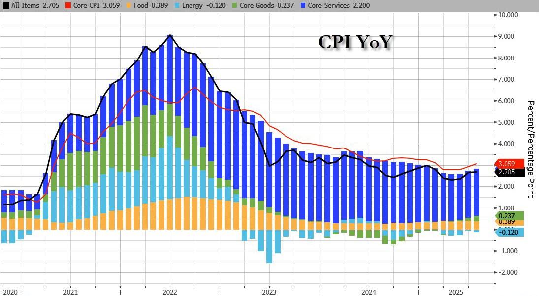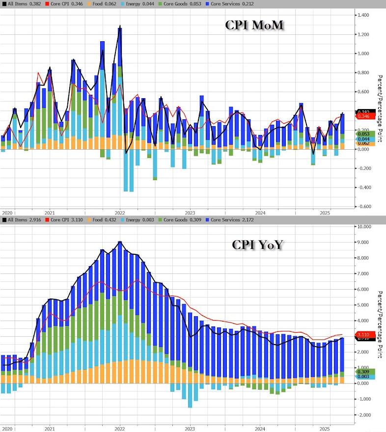 Headline CPI rose 0.4% MoM (hotter than the 0.3% expected, lifting prices up 2.9% YoY – the highest since January…