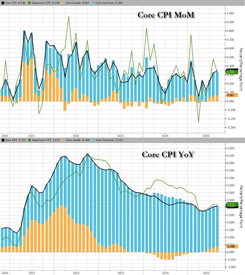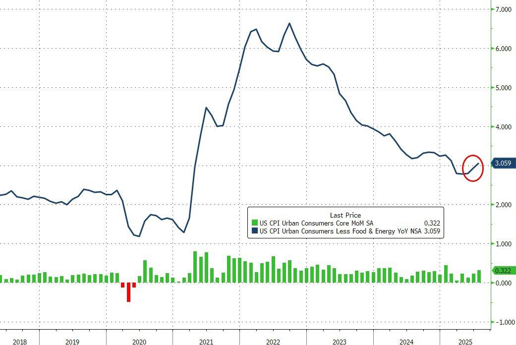 Core CPI rose 0.3% MoM as expected, lifting prices more than 3% YoY for the first time since February…