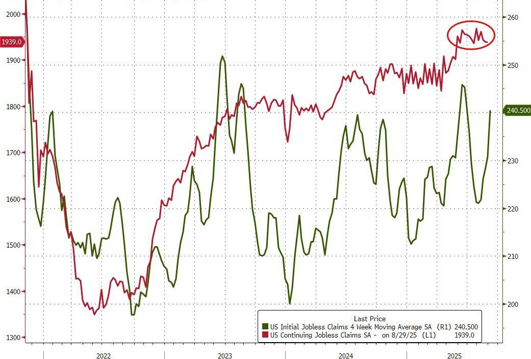 Continuing claims remain above 1.9 million Americans – also the highest in four years…