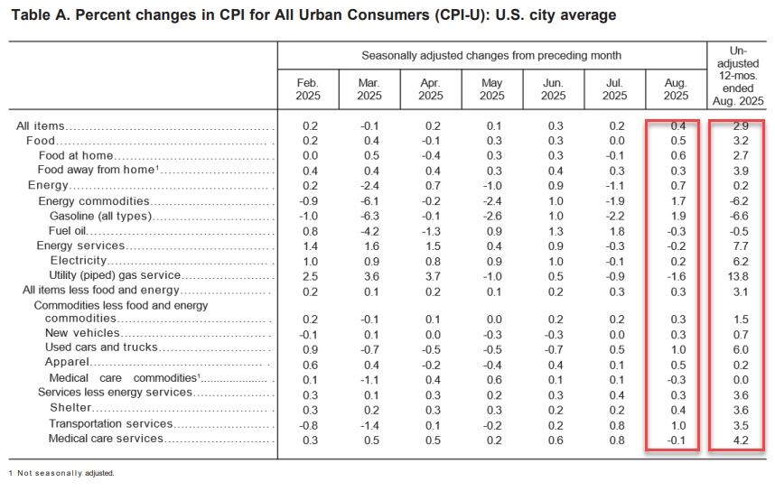CPI rose 0.4% in August, after rising 0.2% in July; over the last 12 months, the all items index increased 2.9% before seasonal adjustment.