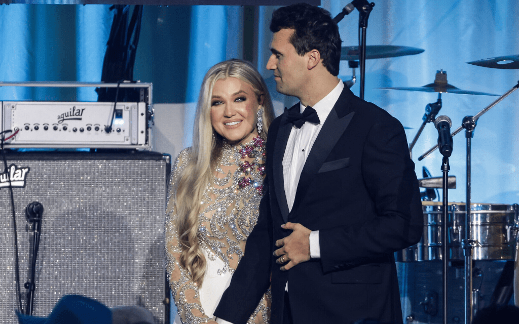 Charlie Kirk (R) and and his wife Erika (L) on stage during the Turning Point USA Inaugural-Eve Ball at the Salamander Hotel on January 19, 2025 in Washington, DC (Samuel Corum / GETTY IMAGES NORTH AMERICA / Getty Images via AFP)