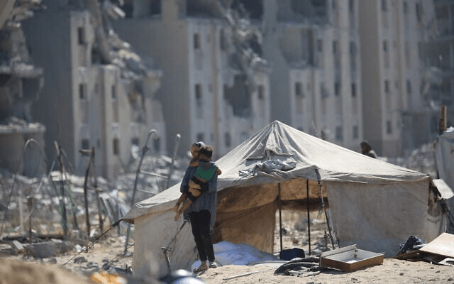 The encampment sits on a vacant Koreatown lot surrounded by apartment buildings and other structures, according to ABC 7.
