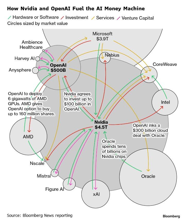 | Japan’s 30-year bond yield jumped to 3.32%, the highest level in history. After a solid/fixed 30-year auction, the yield fell to 3.235%. This ignited a moderate global bond rally. Dec Gold hit 4014.60 at 11:19 ET. Physical gold hit 3991.08. But GDX was -1.8% at 11:07 ET. GDX hit a daily low of -2.4% at 12:14 ET. Dec Gold fell $31.10 from its high by 11:56 ET. Dec gold rebounded to 4010.50 at 13:43 ET. GDX had a modest rebound and was -1.92% at 13:43 ET. As we noted recently, GDX, the gold miners ETF, has been leading gold. GDX is flashing a warning! NY Fed: Short-Term Inflation Expectations Continue to Tick Up; Labor Market Expectations Deteriorate – Median inflation expectations in September increased at the one-year-ahead horizon to 3.4% from 3.2% and at the five-year-ahead horizon to 3.0% from 2.9%… Median one-year-ahead earnings growth expectations decreased by 0.1 percentage point (ppt) to 2.4 percent in September, the lowest reading since April 2021. Mean unemployment expectations—or the mean probability that the U.S. unemployment rate will be higher one year from now—increased 2.0 ppts to 41.1 percent. The mean perceived probability of losing one’s job in the next twelve months increased by 0.4 ppt to 14.9 percent, above the trailing twelve-month average of 14.1 percent… Median year-ahead commodity price change expectations increased by 0.3 percentage point for food (to 5.8%) and for gas (to 4.2%), 0.5 percentage point for the cost of medical care (to 9.3%), and by 1.0 percentage point for rent (to 7.0%). The year-ahead expected change in the cost of a college education declined by 0.8 percentage point to 7.0%. The reading for expected food price growth is the highest since March 2023… https://www.newyorkfed.org/microeconomics/sce#/ ESZs opened modesty high on Monday night and immediately went inert. They broke down at 18:30 ET and fell to 6776.25 at 19:03 ET. ESZs traded in a tight range until they moved modestly higher at 0:04 ET. ESZs quickly went inert again. They eased a tad lower at 2:20 ET and again went inert. After a modest dip to 6774.75 at 4:30 ET, ESZs rallied to the daily high of 6802.75 at 9:06 ET. The dump appeared earlier; ESZs sank to a daily low of 6747.25 at 12:18 ET. ESZs then formed a pennant consolidation. With a modest dip near 14:00 ET, the consolidation turned into a ‘flag.’ After a modest upward breach of the flag consolidation near 15:00 ET, ESZs immediately rolled over into a modest decline. Another rally attempt appeared at 15:38 ET. ESZ plodded to 6766.50 at 16:00 ET. Positive aspects of previous session USZs were +16/32 at the NYSE close. The dollar index rallied smartly. Negative aspects of previous session Dec gold hit 4014.60. US stocks declined moderately in the morning. Gasoline and oil posted modest rallies after sporting modest declines in early US trading. Ambiguous aspects of previous session The dollar and gold rallied sharply. What is this telling us? Precious metals ex-gold and gold miners (GDX -2.09%) declined sharply. First Hour/Last Hour Action [S&P 500 Index]: 1st Hour from NYSE Open: Down; Last Hour: Flat Pivot Point for S&P 500 Index [above/below indicates daily trend to traders]: 6723.01 Previous session S&P 500 Index High/Low: 6754.49; 6699.96 @HedgieMarkets: The AI bubble evidence is now overwhelming. OpenAI needs “trillions” for infrastructure while burning $115 billion through 2029 on $5 billion annual revenue. They’re valued at $500 billion having never made a profit. Even their chairman admits “we’re in a bubble and a lot of people will lose a lot of money.” The Circular Money Game Nvidia invests $100 billion in OpenAI, who uses it to buy Nvidia chips. Meta borrows $26 billion for a data center the size of Manhattan. Companies that previously mined crypto are now AI infrastructure plays. This isn’t investment, it’s musical chairs with trillion-dollar price tags. The Returns Don’t Exist… The Infrastructure Fantasy Bain calculates AI companies need $2 trillion annual revenue by 2030 but will fall $800 billion short… China Just Showed the Risk DeepSeek’s release triggered a trillion-dollar selloff in one day… When Sam Altman admits “we’re missing something quite important” after hyping GPT-5, when 95% of companies see no ROI, when the financing becomes circular, and when insiders acknowledge the bubble while participating, we’re at peak euphoria. This makes dot-com look rational. At least websites could scale infinitely. AI needs physical infrastructure we cannot build, power grids that don’t exist, and customers willing to pay thousands monthly for technology that currently generates “workslop.”… https://x.com/HedgieMarkets/status/1975336265768968632 OpenAI, Nvidia Fuel $1 Trillion AI Market with Circular Deals – BBG Two weeks ago, Nvidia Corp. agreed to invest as much as $100 billion in OpenAI to help the leading AI startup fund a data-center buildout so massive it could power a major city. OpenAI in turn committed to filling those sites with millions of Nvidia chips…. promptly criticized for its ‘circular’ nature. This week, undeterred, OpenAI struck a similar deal. The ChatGPT maker on Monday inked a partnership with Nvidia rival Advanced Micro Devices Inc. to deploy tens of billions of dollars worth of its chips. As part of the tie-up, OpenAI is poised to become one … Fed’s Balance Sheet Runoff in Focus as Bank Reserves Are Ebbing – BBG Overnight funding markets, where banks and asset managers borrow and lend to each other on a day-to-day basis, have been volatile since the beginning of September. Ultra-short-term interest rates, which have been steadily rising as the Treasury is rebuilding its cash pile, remain stubbornly elevated even after a benign quarter end. As a result, the gap between the Secured Overnight Financing Rate and the effective fed funds rate… is near its widest level since the end of 2024… bank reserves just fell below $3 t