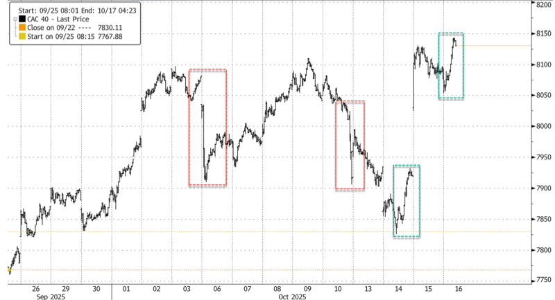 | Jamie Dimon Says It’s Semi-Rational to Own Gold “I’m not a gold buyer — it costs 4% to own it,” Dimon said Tuesday at Fortune’s Most Powerful Women conference in Washington. “But it could easily go to $5,000 or even $10,000 in environments like this. This is one of the few times in my life it’s semi-rational to have some in your portfolio.”… “Asset prices are kind of high,” Dimon added, noting that “in the back of my mind, that cuts across almost everything at this point.”… (And G. William Miran wants to aggressively cut rates!) https://www.msn.com/en-us/money/investment/jpmorgan-ceo-jamie-dimon-says-it-s-semi-rational-to-own-gold/ar-AA1Ov3BC Bessent Floats Longer Tariff Truce for China Rare Earth Delay – BBG Treasury Secretary Scott Bessent proposed a longer pause on high US tariffs on Chinese goods in return for Beijing putting off its recently announced plan to tighten limits on critical rare earths… “Is it possible that we could go to a longer roll in return? Perhaps. But all that’s going to be negotiated in the coming weeks.:… https://news.bloomberglaw.com/international-trade/bessent-floats-longer-tariff-truce-for-china-rare-earth-delay US Equities Surge After Bessent, Greer Suggest Hope for De-Escalation with China “I believe China is open to discussion, and I am optimistic that this can be de-escalated ultimately. We are confident in the strong relationship between President Trump and President Xi. We’ve had substantial communication with the Chinese over the past few days, and we believe that there will be more forthcoming this week,” Bessent said… https://www.zerohedge.com/markets/us-equities-surge-after-bessent-greer-suggest-hope-de-escalation-china Miran Says Trade Uncertainty Makes Fed Rate Cuts More Urgent “There’s now more downside risks than there was a week ago, and I think it’s incumbent upon us as policymakers to recognize that should get reflected in policy,” Miran said Wednesday during an event organized by CNBC. Higher uncertainty around trade policies between China and the US have introduced a “new tail risk,” he said… (DJT stooge Miran’s stupidity is ineffable.) https://news.bloomberglaw.com/international-trade/feds-miran-says-trade-uncertainty-makes-rate-cuts-more-urgent Treasury Secretary Bessent says a stock market decline won’t deter the U.S. from taking strong action against China (BS! Most everyone believes that Trump dreads stock tumbles!) Bessent pushed back on a report in The Wall Street Journal overnight that China “expects that the prospect of another market meltdown ultimately will force [President Donald Trump] to negotiate.” Chinese President Xi Jinping is “betting that the U.S. economy can’t absorb a prolonged trade conflict” with China, the Journal reported, citing people close to Beijing’s decision-making… The Cabinet secretary called that report “terrible,” accusing the newspaper of taking “CCP dictation.”… https://www.cnbc.com/2025/10/15/treasury-secretary-bessent-stock-market-china.html Trump administration will set price floors across range of industries to combat China, Bessent says The U.S. has to use industrial policy to compete against nonmarket economies like China… The administration could take equity stakes in more companies… he said… “When you are facing a nonmarket economy like China, then you have to exercise industrial policy,”… “So, we’re going to set price floors and the forward buying to make sure that this doesn’t happen again and we’re going to do it across a range of industries,”… The U.S. also needs to set up a strategic mineral reserve, Bessent said. JPMorgan Chase is interested in working with the Trump administration to create such a reserve, he said… (Bessent using China as excuse for US fascism/central planning!) https://www.cnbc.com/2025/10/15/trump-xi-china-bessent-price-floor-rare-earth-critical-mineral.html Bessent rips ‘unhinged’ Chinese trade negotiator and announces ‘price floors’ in latest pushback on Beijing – “There was a lower level trade person who was slightly unhinged here in August … threatening, saying China would unleash chaos on the global system if the US went ahead with our docking fees on Chinese ships, and this is something they clearly were planning all along,” Bessent said during CNBC’s “Invest in America” forum… https://trib.al/yTmW8Tp 500% tariffs on China soon? Bessent says 85 US senators ready to give Trump authority over Beijing’s Russian oil import 1:24 ET https://www.livemint.com/news/us-news/500-tariffs-on-china-soon-bessent-says-85-us-senators-ready-to-give-trump-authority-over-beijings-russian-oil-imports-11760548182209.html People with gray hair or little hair recalled Nixon’s failed price controls and industrial policy of the early ‘70s that exacerbated US inflation and crimped the US economy. Gold and silver all-time highs; stock valuations at or near all-time highs; Team Trump and insanely inept Fed officials calling for rates cuts – now add price controls and industrial policy plus government buying and taking controls of companies – and you have the ingredients of Banana Republic economics. Reaganism undid US and the West’s Banana Republic economics. We are back to the future, see gold. @DonMiami3: This is the least pro-free market administration we’ve probably ever had, combining both equity market control & federal takeovers of US companies. Gold flips them off ESZs traded in a 14-handle, mostly positive, range from the Nikkei opening until they commenced a persistent rally at 22:12 ET that eventually hit a daily high of 6766.75 at 10:09 ET. ESZs then commenced a sharp decline that took them to a daily low of 6651.50 at 13:15 ET. Conditioned buying for Q3 earnings results energized the usual afternoon rally (after morning declines). ESZs hit 6721.50 at 14:59 ET. ESZs then rolled over and fell to 6695.75 at 15:56 ET. A late and 
