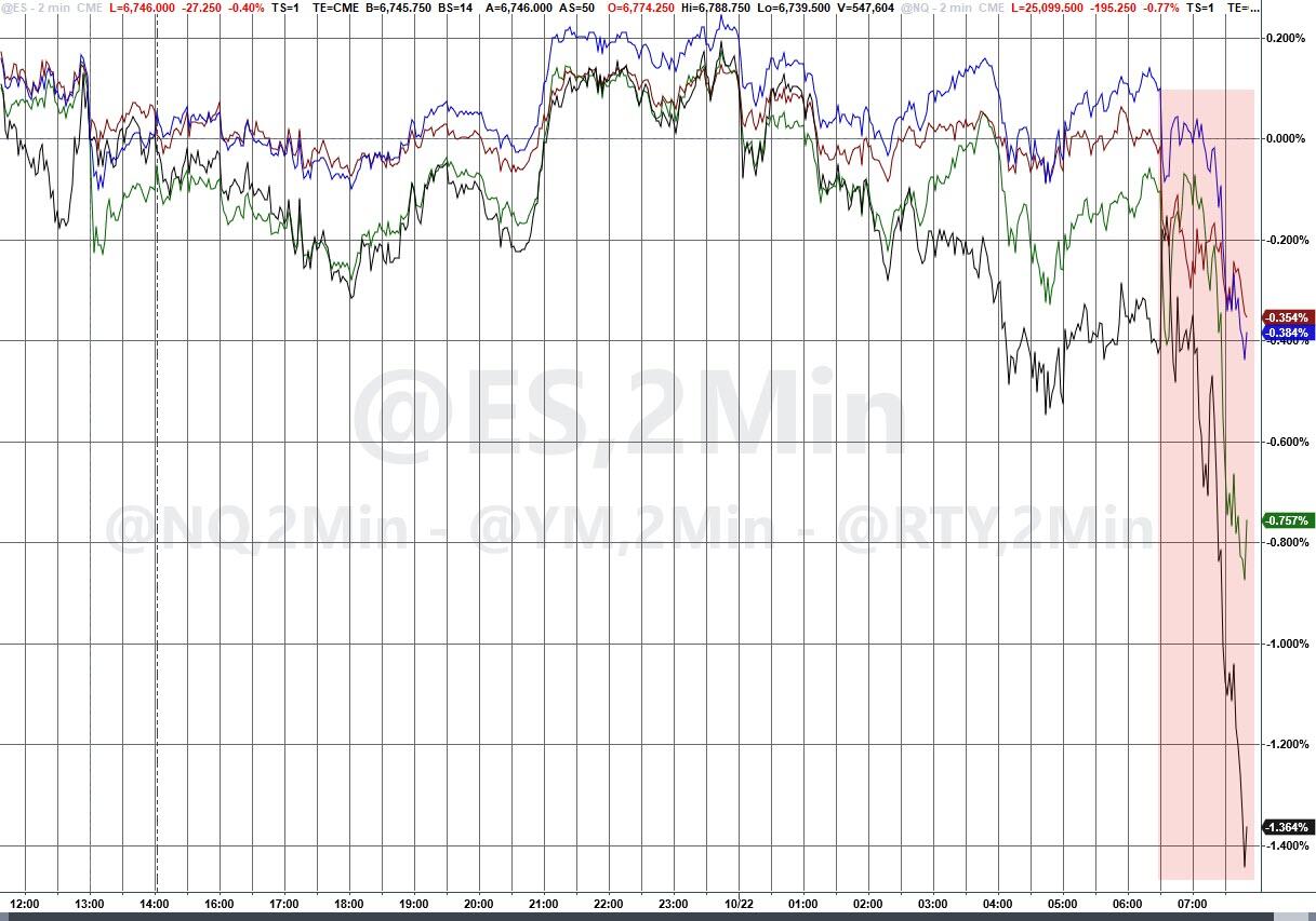 | Precious metals got clobbered on Tuesday. ‘They’ finally took action to halt gold. Long-time gold traders/investors know exactly what we are saying. For decades, when gold got going to the upside with Big Mo, inevitably gold got smacked down. The assault on AU began on the 3 ET European opening. The fact that ‘they’ did not intervene much earlier indicates that ‘they’ recognized that the gold rally was different this time. Spot gold sank to 4082.03 at 10:43 ET, -6.7% from its all-time high of 4375.38 at 18:24 ET on Monday. Trump: I Have Great Relationship with Xi (Why keep saying this?) – BBG 12:51 ET Trump: I Want Xi to Have a Good Deal for China – BBG 12:51 ET Trump: I Expect to Make a Good Deal with Xi – BBG 12:51 ET Trump: We Built China’s Military with All the Money We Lost (true!) – BBG 12:52 ET Trump: Maybe my meeting with Xi won’t happen anymore, that would be okay – BBG 12:52 ET Trump: Schumer, Radical Left Holding Government Hostage – BBG 12:52 ET Trump-Putin summit planned for Budapest is on hold after call between Rubio and Lavrov, US official says – AP 12:44 ET Axios: In a shift, White House says no plan for Trump-Putin summit – 12:48 ET Russia Effectively Rejected Trump Ukraine Plan on Weekend – BBG 12:59 ET @AFP: Trump pressured Ukraine to give up Donbas region: senior Kyiv official to AFP ESZs opened modestly higher on Monday night but created a double top at 6784.75 (21:19 ET) and at 22:29 ET (6785.00). ESZs plodded to a low of 676.25 at 4:19 ET. ESZs then tripled topped (6777.75) at 8 ET, 8:14 ET, and 8:24 ET. ESZs sank to 6759.25 at 6759.25 at 10:02 ET. The programed buying on expected retail buying at 10:00 ET appeared. ESZs staged a volatile 5-wave rally, with steep 2nd and 4th wave drops that created a daily high of 6789.75 at 12:43 ET. ESZs then sank to 6767.25 at 13:01 ET. The afternoon rally took ESZs to 6784.25 at 14:321 ET. After a retreat to 6776.50 at 15:05 ET, ESZs plodded to t6784.00 at 15:54 ET but fell to 6771.50 at 16:00 ET. @kurtsaltrichter: Credit card delinquencies just hit their highest level since 2010. Total credit card debt is now over $1.2T, and more than 12% of accounts are 90+ days delinquent. Those with assets will be fine. Those with debt are getting crushed. The wealth gap isn’t closing, it’s accelerating. https://x.com/kurtsaltrichter/status/1980656832713507116 WSJ’s @ajsaeedy: The U.S. is currently finalizing a $40 billion bailout of Argentina, including a $20bn loan to be provided by a number of big banks. But they’re struggling to put together a deal that protects them from the bad credit of the virtually-bankrupt South American country… @OliLondonTV: Japan’s new Prime Minister Sanae Takaichi: Ultra Conservative • Nationalist • Compared to Margaret Thatcher • Hardline stance on immigration & national security • Critical of China • Believes marriage is between a man and woman • Played in Heavy Metal band Chip crunch: how the AI boom is stoking prices of less trendy memory Spot prices of DRAM, used in various applications, nearly tripled in September from a year earlier, after growing a meager 4% in April, according to data from TechInsights provided to Reuters. The average inventory of DRAM chips fell to just eight weeks in the current quarter, from 10 weeks a year earlier and 31 weeks in early 2023… https://finance.yahoo.com/news/analysis-chip-crunch-ai-boom-230038682.html Positive aspects of previous session The DJIA and DJTA rallied smartly. USZs were +14/32 at the NYSE close. Precious metals were hammered. Negative aspects of previous session Fangs rallied only modestly. Ambiguous aspects of previous session Reversal in precious metals or much needed correction? First Hour/Last Hour Action [S&P 500 Index]: 1st Hour from NYSE Open: Down; Last Hour: Down Pivot Point for S&P 500 Index [above/below indicates daily trend to traders]: 6736.51 Previous session S&P 500 Index High/Low: 6752.16; 6720.03 GOP @SenMullin: Dems wrote Obamacare. They passed Obamacare without a single GOP vote. They created the Obamacare COVID credits without a single GOP vote, and they extended those credits AND chose a 2025 expiration date with no GOP votes. If Dems want to discuss their Obamacare failures, we welcome the conversation… after they end the Schumer Shutdown. After the close, Netflix reported EPS of 5.87, 6.97 expected. Operating income of $3.24B was $400 million less than expected. Revenue was the expected $11.51B. NFLX blames a tax dispute with Brazil for the shortfall. Netflix sees Q4 EPS of 5.45, 5.42 expected; and sales of $11.96B, $11.9B expected. NFLX sank as much as 7%. Today – The late ESZs decline might have been due to inside info about Netflix’s EPS shortfall. Traders will keep playing for the earnings season rally, particularly in Fangs, and the possibility of a TACO Tuesday Rally. Like night following day, Trump does TACOs after tough guying China. ESZs are -4.75; NQZs are -54.50; Dec AU is -85.20; and USZs are -2/32 at 20:12 ET. Expected impact earnings: HLT 2.06, T 0.54, LUV -0.03, TSLA .53, PKG 2.82, ORLY .83, IBM 2.41 The Fed is in a blackout for the FOMC Meeting on October 29. S&P Index 50-day MA: 6578; 100-day MA: 6383; 150-day MA: 6122; 200-day MA: 6075 DJIA 50-day MA: 45,835; 100-day MA: 44,763; 150-day MA: 43,533; 200-day MA: 43,513 (Green is positive slope; Red is negative slope) S&P 500 Index (6735.35 close) – BBG trading model Trender and MACD for key time frames Monthly: Trender and MACD are positive – a close below 5643.15 triggers a sell signal Weekly: Trender and MACD are positive – a close below 6445.33 triggers a sell signal Daily: Trender and MACD are negative – a close above 6834.79 triggers a buy signal Hourly: Trender and MACD are positive – a close below 6692.52 triggers a sell signal Ohio Judge Could Face Further Consequences Over Charlie Kirk Comments https://www.dailysignal.com/2025/10/20/ohio-judge-could-face-further-consequences-over-