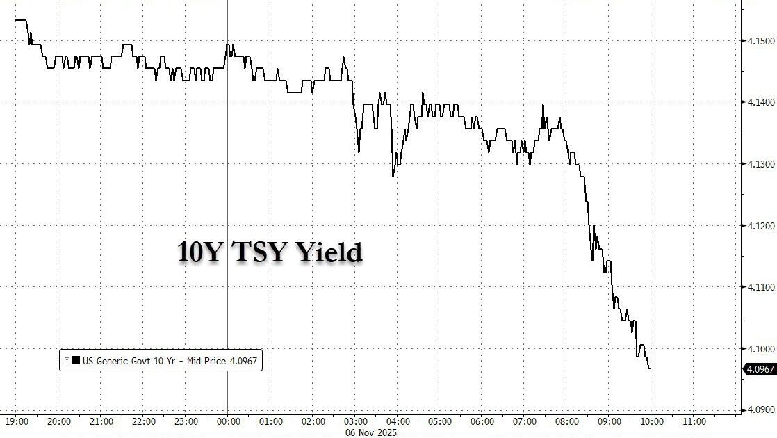 | The Nikkei sank as much as 4.7% on Wednesday and 6.8% from Tuesday’s record high of 52636.87. @Barchart: Japan’s 10-Year Yield approaching its highest level (1.677%) since the run-up to the Global Financial Crisis https://x.com/Barchart/status/1985886135759855824 @BlueHorse88: Japan’s Liquidity Is Tightening Faster – Fresh BoJ data for October show the monetary base shrinking at a –17.9% seasonally‑adjusted annualized pace. At the same time, bank reserve balances are down –7.6% year‑on‑year. Translation: the BoJ is letting excess liquidity drain — fewer reserves, scarcer yen funding. Why it matters: Less base money → tighter yen liquidity Scarcer reserves → higher effective funding costs; – Tighter funding → weaker economics for the JPY carry. At a –17.9% SAAR clip in October, the pace of contraction clearly accelerated. Chart: Reserve balances (YoY) sliding; monetary base falling at a –17.9% SAAR in Oct‑25. Source: Bank of Japan, Monetary Base (October 2025) (Nov 5, 2025) https://x.com/BlueHorse88/status/1985881583698444653 With Dems securing the top state offices in the Virginia election, where beaucoup idled by the shutdown government workers reside, Dems are ready to reopen the government per numerous reports. Schumer, Jeffries Seek Meeting to End Government Shutdown Senate Democrats eye exit from record-breaking shutdown as pressure intensifies – FOX Schumer’s caucus mulls GOP offers on Obamacare votes and spending bills… Trump: “We are in the midst of a disastrous Democrat really government shutdown… the Democrat radicals in the Senate have shown zero interest in reopening the government… I think they’re kamikaze pilots… They’ll take down the country if they have to.” https://t.co/2UkI7M9CpR US Treasury: Quarterly Refunding Statement… Treasury has begun to preliminarily consider future increases to nominal coupon and FRN auction sizes… Based on current fiscal forecasts, Treasury expects to maintain the offering sizes of benchmark bills into late-November. Given projections for receipts associated with the mid-month corporate and non-withheld tax date, Treasury expects to implement modest reductions to short-dated bill auction sizes during the month of December. Thereafter, by the middle of January 2026, Treasury anticipates increasing bill auction sizes based on expected fiscal outflows… (French for tsunami of debt coming) https://home.treasury.gov/news/press-releases/sb0305 Global Bond Binge Lifts Sales to Record $5.94 Trillion This Year – BBG @AdpResearch: Private employers added 42,000 jobs (40k exp) in October, reversing two months of weak hiring… Education & health care, and trade, transportation, and utilities led the growth. For the third straight month, employers shed jobs in professional business, information, and leisure and hospitality. (500+ employees +74k, 50-249 -25k) https://adpemploymentreport.com/ Oct ISM Services Index 52.4, 50.8 exp, 50 prior, Prices Paid 70, 68 exp, 69.4 prior; New Orders 56.2, 51 exp, 50.4 prior; Employment 48.2, 47.6 exp, 47/2 prior Oct S&P US Services PMI 54.8, 55.2 exp & prior, Composite PMI 54.6, 54.9 exp, 54.8 prior McDonald’s US sales slump as low, middle-income consumers feel ‘heightened anxiety’ McDonald’s reported first quarter revenue of $5.96 billion, which came in below the $6.12 billion expected… a 3% decline from the prior year period. Global comparable sales — or sales at restaurants in operation for more than one year — fell 1%, led by a 3.6% drop in US same-store sales as fewer customers visited McDonald’s in its home country. Wall Street analysts had, on average, expected global comparable sales to rise 0.5% and US sales to fall a more modest 1%…. (EPS 2.67, 2.68 consensus. ) CEO Chris Kempczinski in a call with analysts… said traffic from low-income consumers fell “nearly double digits versus the prior quarter” and that from middle-income customers fell “nearly as much,” while visits from high-income consumers “remained solid.”… https://finance.yahoo.com/news/mcdonalds-us-sales-slump-as-low-middle-income-consumers-feel-heightened-anxiety-110133999.html After falling 1.9% in pre-market trading, MCD rallied as much as 3.3% because the Burgermeister said it expects higher Q4 sales on its Monopoly promotion and Extra Value Meal initiatives. ESZs sank on AMD and Japan in early Tuesday night trading. They hit the daily low of 6748.50 at 20:37 ET. After a bounce to 6795.25 at 22:4 ET, ESZs traded sideways, with several modest new highs, until they broke lower near 5:40 ET. After hitting 6771.75 at 6:01 ET, ESZs did a nearly vertical A-B-C rally to 6831.25 at 10:41 ET. After a 15-handle A-B-C corrective drop, ESZs soared to a daily high of 6857.75 at 12:38 ET. ESZs then traded in an 11-handle band until the broke lower after 15:43 ET. With traders being too long and few patsies in the equity market, ESZs sank to 6820.25 at 16:00 ET. The market theme on Wednesday appeared to be: Buy stocks/sell bonds on the coming end to the US government shutdown. However, SCOTUS justices were skeptical about Trump’s ability to levy tariffs without Congressional approval despite laws that allow him to do so when in the national interest. This might have been an inducement to buy stocks. Constitutional attorney @barnes_law: After listening to today’s oral arguments (at SCOTUS), Trump’s tariffs are cooked. Trump abandoned using tariffs for industrial policy related to the economic emergency of our trade deficit, instead choosing to use them like sanctions as a political toy. @Barchart: U.S. Household Debt jumps to new all-time high of $18.59 Trillion https://t.co/JvKKNvCyqF Positive aspects of previous session Someone saved stocks during the 3rd hour of Nikkei trading and after 6:01 ET. Fangs, of course, led the rally. Negative aspects of previous session USZs declined as much as 1 2/32. Gold rallied smartly. ESZs and stocks sank after 15:43 ET. Am