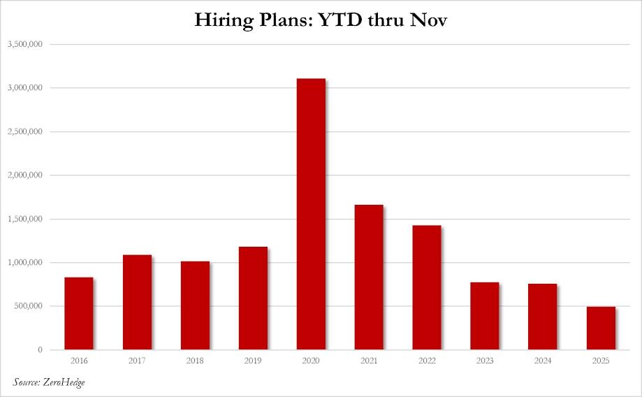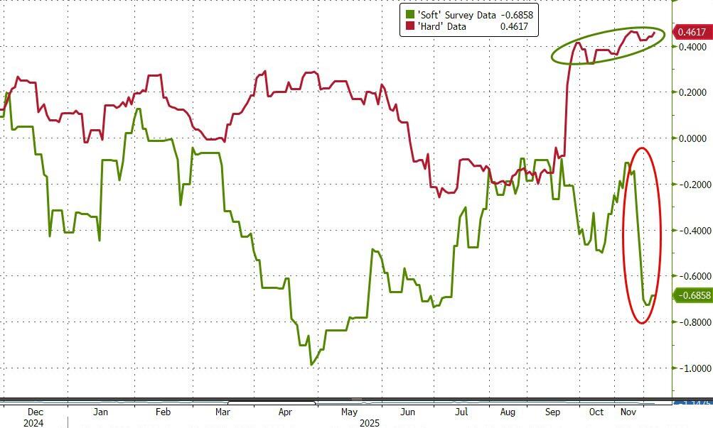 | The FT: Bond investors warned US Treasury over picking Kevin Hassett as Fed chair … worrying he will cut interest rates aggressively to please President Donald Trump… The discussions took place in November, before Treasury secretary Scott Bessent held his second round of interviews with candidates to replace Jay Powell… John Stopford, head of managed income at asset manager Ninety One, added: “I think the market sees him as a Trump stooge which erodes the Fed’s credibility at the margin.” https://www.ft.com/content/ad4bfd8b-a0f8-4f9e-a234-eed589e3d0ab ADP Employment Change for November: -32k, +10k expected, prior +42k MBA Mortgage Applications for the week ended on November 28: -1.4% week/week ESZs opened a tad higher on Tuesday night and staged a modest rally during the first hour of night trading. ESZs then broke lower and turned negative at 19:20 ET. After hitting a low of 6839.00 (-1.25) at 19:20 ET, ESZs rallied to 6857.00 at 22:43 ET. ESZs traded in a 12-handle range until they broke higher after the 7 ET US repo market opening. ESZs hit a daily high of 6862.25 (+22.25) at 8:14 ET. ESZs then fell on the ugly ADP Employment Change (8:15 release) to 6854.00 at 8:17 ET. ‘Bad economic news means Fed rate cut’ buyers lifted ESZs to 6860.50 at 8:52 ET. ESZs then plunged to a daily low of 6817.50 at 9:10 ET. But Fed rate cut buyers regrouped and got aggressive; ESZs soared to 6859.50 at 11:37 ET. After a sudden drop (post-European close move) to 6840.00 at 11:54 ET, ESZs intractably rallied to a new high of 6873.25 at 15:12 ET. After an A-B-C decline to 6859.25 at 15:54 ET, ESZs bounced to 6864.00 at 16:00 ET. The DJIA and DJTA rallied sharply; Fangs declined smartly with the NY Fang+ Index being -1.78% at its low (9:53 ET). Netflix -6.7% at its low, and Microsoft, -3.0% at its low, were the featured losers. Netflix Offers Mostly Cash for Warner Bros. in New Bid Round – BBG Microsoft Lowers AI Software Sales Quotas as Costumers Resist Newer Products – BBG 98 ET OpenAI’s “Code Red” – Maybe people should have seen this coming? “… OpenAI lacks both profits and a moat. The systems that they build are hugely expensive to operate, because they require massive amounts of compute for training… Google seems finally to be catching up, with their Gemini model… Large language models such as ChatGPT may quickly become commodities; we can expect price wars, and profits may continue to be elusive, or modest at best.” – from my January 2024 warning that OpenAI’s luck might run out… The basic thesis then was that although OpenAI was then the darling of AI, things could change. Things took longer to unravel than I thought they would, but OpenAI’s unraveling has begun. As The Wall Street Journal reports, the company has just declared a Code Red; they are terrified that Google’s new model has eclipsed them. By any reasonable measure OpenAI has clearly squandered the sizable lead they once had… Their war chest is impressive, but their burn rate is terrifying. My guess is that they have cumulatively raised on the order of $100 billion since they launched, perhaps more than any other company in history, but have already spent most of it, and likely don’t have much more than a year’s runway left… https://garymarcus.substack.com/p/openais-code-red OpenAI cofounder says scaling compute is not enough to advance AI: ‘It’s back to the age of research again’ – Tech companies have poured hundreds of billions into acquiring GPUs and building data centers to essentially make their AI tools — whether that’s LLMs or image-generation models — better. The wisdom goes that the more compute you have or the more training data you have, the smarter your AI tool will be… Sutskever, who now runs Safe Superintelligence Inc., believes that method is running out of runway; data is finite, and organizations already have access to a massive amount of compute, he said… “The thing, which I think is the most fundamental, is that these models somehow just generalize dramatically worse than people,” he said. “It’s super obvious. That seems like a very fundamental thing.” https://www.businessinsider.com/openai-cofounder-ilya-sutskever-scaling-ai-age-of-research-dwarkesh-2025-11 Isn’t ‘generalize’ another word for ‘think’ or ‘infer.’ So basically, still computers CANNOT THINK. They can only regurgitate, catalogue, and organize programmer inputs – no matter how big they are. @MHowellTweets: Artificial Intelligence doesn’t know the truth and it never will. It can’t. All it can know are patterns stitched together from whatever it digests. And like any organism, it becomes what it consumes. I know this all too well from personal experience: a bad diet has bad results. But at the risk of sounding hypocritical, I have to say it: AI is eating garbage. Tons of it… The people building today’s AI systems choose what these models are trained on and how much credibility each source gets. They calibrate the entire information diet, and we see the consequences in the outputs. Take Elon Musk. His model, Grok, is trained primarily on X data. Meanwhile, models like ChatGPT and Google’s Gemini gorge themselves on a steady stream of Wikipedia pages and Reddit threads… The information has been laundered, filtered from a questionable source into a polished, authoritative-seeming format. It would be funny if it weren’t so dangerous… https://x.com/MHowellTweets/status/1996268921712742410 Apple’s App Store saw spending slowdown in November, Goldman Sachs says Spending grew 6% year-over-year to $6.61B0, down from 9% growth in October, Goldman Sachs analyst Michael Ng noted. Games saw a notable decline, as the all-important category, which accounts for roughly 44% of total spend, saw a 2% year-over-year decline, compared to 3% growth in October… https://www.msn.com/en-us/money/companies/apple-s-app-store-saw-spending-slowdown-in-november-goldman-sa
