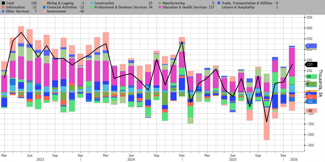 | US Economic Data released on TuesdayJanuary NFIB Small Business Optimism 99.3, 99.8 expected, 99.5 priorJanuary 10 ADP Weekly Employment Change 3.75kJanuary 24 ADP Weekly Employment Change 5.0kJanuary 24 ADP Weekly Employment Change 6.5kQ4 Employment Cost Index 0.7%, 0.8% expected and priorDecember Retail Sales 0.0% m/m, 0.4% expected, 0.6% priorDec Retail Sales Ex-Autos 0.0% m/m, 0.4% expected and priorDec Retail Sales Ex-Autos & Gas -0.1% m/m, 0.4% expected, 02% (from 0.4%) prior@MauiBoyMacro: “The Employment Cost Index shows continued deceleration in compensation growth in Q4. All metrics of wage growth are slowing even as inflation has gotten stuck confirming that labor demand < greatly reduced labor supply.” – Julia Coronadohttps://x.com/MauiBoyMacro/status/2021272524105961826Though AI euphoria permeates the market, AI-related capex and soared while money spent on share buybacks has collapsed. Guess what will happen soon! Percent of Operating Cash Flow Spent on Capex vs. Buybacks for S&P 500 StocksBuyback peak of 46% in 2020, now 15% estimated with Capex now 44% https://x.com/MauiBoyMacro/status/2021267198904553643/photo/1Fangs and AI-related stocks were soft after their robust two-day rebound. The DJIA and DJTA rallied moderately. USHs rallied sharply on the soft US economic data and expectations that January NFP, due to released today, will be softer than the expected 65k. The NFP Whisper Number is 36k.Gold and silver were modestly lower in the morning; Bitcoin fell to 67,878.50 at 9:44 ET.Fed’s Hammack Says Rates Could Be on Hold for ‘Some Time’ – BBG 12:00 ETFed’s Hammack: Funds Rate Is Now in the Vicinity of Neutral– BBG 12:00 ETHammack:Inflation Still Too High But Expected to Ease in 2026 – BBG 12:00 ETCleveland Fed’s Hammack:The U.S. Government Is on Unsustainable Fiscal Path – BBGFed’s Hammack: Watching for Build Up of Leverage in Treasury Market – BBG(Note to Hammack: The Treasury market is always massively leveraged!)Dallas Fed’s Logan: Fed’s Rate Target Likely Near Neutral – BBG 13:00 ETDallas Fed’s Logan: Risks of Elevated Inflation Remain – BBG 13:00 ETFed’s Logan: I Have Taken Note of Growth in Treasury Cash-futures Basis Trade – BZG 13:34 ETWith US economic data looking soft and an ugly January NFP looming, Trump resorted to gaslighting.@ElectionWiz: President Trump says the Republicans “should win in a landslide” in the Midterms.“I’m popular and I’ve done well. I think we’ve got the greatest economy ever in history. We’ve got the hottest country anywhere in the world.” https://x.com/ElectionWiz/status/2021274972514115842ESHs opened modestly higher on Monday night but quickly fell and hit a low of 6972.25 (-11.00) at 22:15 ET. A protracted A-B-C rally took ESHs to 6997.50 at 4:16 ET. ESHs then completed a ‘W’ top at 7:28 ET. ESHs sank to a daily low of 6970.50 (-13.25) at 8:10 ET. Aggressive and conditioned buying for the NYSE opening took ESHs to a daily high of 7006.50 (+23.25) at 10:30 ET.The 2nd-Hour Reversal became an A-B-C decline that produced a new minor daily low (6969.00) at 13:52 ET. ESHs rallied to 6982.25 at 14:32 ET and rolled over. ESHs stair stepped lower until they began a tumble at 15:49 ET that created a new daily low of 6957.00 at 15:56 ET.Positive aspects of previous sessionThe DJIA and DJTA rallied moderately in the morning.US stocks peaked at 10:30 ET; and tumbled late in the session.USHs rallied sharply and commodities dropped, but on economic ebbing angst.Negative aspects of previous sessionFangs and AI-related stocks declined modestly.Ambiguous aspects of previous sessionHow bad will January NFP be?First Hour/Last Hour NYSE Action [S&P 500 Index]: 1st Hour: Up; Last Hour: DownPivot Point for S&P 500 Index [above/below indicates daily trend to traders]: 6950.26Previous session S&P 500 Index High/Low: 6986.83; 6937.53@nicksortor: Israeli PM Benjamin Netanyahu has arrived in Washington, DC for his meeting at the White House with President Trump… https://x.com/nicksortor/status/2021372233591988659Today – Even if you knew the January NFP, you would not know the market reaction. Is bad NFP good for stocks or bad for stocks – or vice versa. The fact that stocks and ESHs peaked at the end of the first hour of NYSE trading and sank late in the session is a big negative for today.ESHs are 18.25, NQAs are +87.50; USHs are +4/32; while SI and AU are up moderately at 21:35 ET.Expected Economic Data: January NFP 65k, Mfg -7k, Rate 4.4%, Labor Participation Rate 62.4%, Wages 0.3% m/m & 3.7% y/y; Workweek 34.2; Benchmark NFP Revision -825k; Jan Federal Budget -$94.4BFed Speakers: KC Pres Schmid 10 ET, Gov Bowman 10:15 ETS&P Index 50-day MA: 6892; 100-day MA: 6806; 150-day MA: 6673; 200-day MA: 6485DJIA 50-day MA: 48,732;100-day MA: 47,727; 150-day MA: 46,781; 200-day MA: 45,677(Green is positive slope; Red is negative slope) S&P 500 Index (6941.81 close) – BBG trading model Trender and MACD for key time framesMonthly: Trender and MACD are positive – a close below 5896.83 triggers a sell signalWeekly: Trender is positive; MACD is negative – a close below 6443.43 triggers a sell signalDaily: Trender and MACD are negative – a close above 6981.45 triggers a buy signalHourly: Trender and MACD are negative – a close above 6974.12 triggers a buy signal@samba_tv: 48.6M U.S. households tuned in to #SuperBowl LX, representing a 13% decrease from last year’s game. 26.5M U.S. households watched BadBunny’s halftime performance, down 39% from Kendrick Lamar’s 2025 show…Super Bowl fans ‘sickened’ after translating Bad Bunny’s X-rated Spanish lyrics: ‘This is pure degeneracy’https://www.dailymail.co.uk/tvshowbiz/article-15543261/Bad-Bunny-Spanish-lyrics-Super-Bowl.html@mattvanswol: The Democrat Sheriff of Charlotte NC, Gary McFadden, was just completely unable to answer: a) What the 3 branches of government are. b) Which branch he serves under. This is genuinely painful to watc