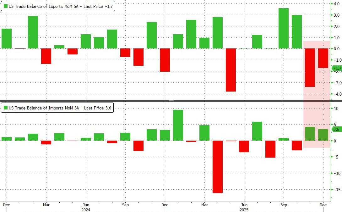 Expected Econ Data: Dec Trade Balance -$55.5B, Imports 0.1% m/m, Exports 0.1%; Dec Advance Goods Trade Balance -$86.0B; Dec Wholesale Inventories 0.2% m/m, Retail Inventories 0.2%; Feb Phil Fed Business Oulook 7.8; Initial Jobless Claims 225k, Continuing Claims 1.86m Dec LEI -0.3%; Jan Pending Homes Sales 2.0% m/m, 3.0% NSA Y/Y