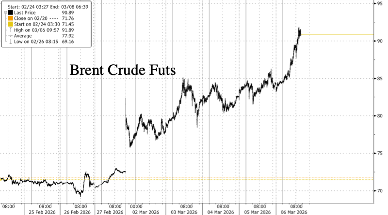 | BBG: Beijing told major refiners to suspend exports of diesel and gasoline… An Iran missile hit a large refinery in Bahrain. Iran is targeting energy infrastructure in the Middle East. Kuwait Cuts Oil Processing at Its Refineries with Hormuz Blocked – BBG 12:55 ET Gasoline and oil soared on Thursday. Bonds and stocks declined smartly. The NY Fang+ Index was up moderately early on Broadcom (+4.95% near 11:00 ET) and CrowdStrike (+4.84% near 11:00 ET). Gold fell moderately on a report that Poland might sell gold to finance military spending. https://www.msn.com/en-us/money/other/poland-s-central-bank-chief-weighs-gold-sales-to-finance-defense/ar-AA1XAHhP ESHs opened modestly higher on Wednesday night and rallied to a daily high of 6900.75 (+2.25) at 119:17 ET. Then then did a 5-wave decline to 6840.50 at 3:30 ET. After frenzied trader buying propelled ESHs to 6894.00 at 4:09 ET, ESHs commenced a decline that took them to 6835.75 at 9:17 ET. The rally for the NYSE opening spiked ESHs to 687.50 at 9:59 ET. The Pro Dump appeared; ESHs tumbled to a new daily low of 6814.25 (-61.75) at 10:30 ET. The 2nd-Hour Reversal took ESHs to 6847.25 at 10:53 ET. Selling resumed; ESHs sank to a new daily low of 6811.00 at 11:18 ET. The manipulation for the European close pushed ESHs to 6845.25 at 12:04 ET. Selling reappeared; ESHs sank to a daily low of 6781.00 at 12:55 ET. After a 21-handle rebound, ESHs retreated into a trading range until a minor new low of 6777.00 appeared at 14:32 ET. ESHs went inert until the last-hour attempt to close the S&P 500 Index above 6800 commenced. The illegal late manipulation zoomed ESHs to 6826.25 at 15:25 ET and went inert. At 15:50 ET, ESHs mover higher; they hit 6839.00 at 15:57 ET. We warned last week (and before that) that the decline in oil and gasoline prices was keeping inflation metrics from large increases. We also noted that gasoline prices had increased sharply from their January 5 low to the end of February. July Gasoline is up 19% over the past 5 days. It is up over 73 cents, or 40% since the January 5 low. The front month gasoline contract is at its higher level since May 2024. Positive aspects of previous session The NY Fang+ Index rallied 66.86. An illegal late manipulation greatly truncated equity losses and closed the S&P 500 above 6800. Negative aspects of previous session The DJTA declined 578.08 even with the late manipulation USMs fell as much as 31/32. June (M) is now the front month. Gasoline +16.71 cents or 6.5% at its high; April WTI Oil settled +8.5%. Heating oil +10.2% at peak. Ambiguous aspects of previous session Do you think Team Trump will allow stocks to crater while it is at war with Iran? First Hour/Last Hour NYSE Action [S&P 500 Index]: 1st Hour: Down; Last Hour: Up Pivot Point for S&P 500 Index [above/below indicates daily trend to traders]: 6823.97 Previous session S&P 500 Index High/Low: 6870.4; 6770.78 Trump fired DHS Sec Noem and nominated GOP Sen. Mullin (OK) to replace her. She was a disaster! https://x.com/Osint613/status/2029629075975983114 Fed Balance Sheet: $15.097B on T-Bills +$14.760B; Reserves +$49.776B US weighs oil futures market action to combat rising energy prices, WH official says: Reuters The approach also reflects the background of Treasury Secretary Scott Bessent, a former hedge fund manager… https://www.reuters.com/business/energy/us-weighs-oil-futures-market-action-combat-rising-energy-prices-wh-official-2026-03-05/ Team Trump will now directly manipulate future contracts instead of the indirect manipulation done by others at government request that has occurred for decades. @SecScottBessent: To enable oil to keep flowing into the global market, the Treasury Department is issuing a temporary 30-day waiver to allow Indian refiners to purchase Russian oil. This deliberately short-term measure will not provide significant financial benefit to the Russian government as it only authorizes transactions involving oil already stranded at sea. India is an essential partner of the United States, and we fully anticipate that New Delhi will ramp up purchases of U.S. oil. This stop-gap measure will alleviate pressure caused by Iran’s attempt to take global energy hostage. (Another TACO!) Today – Now that Team Trump warned the world that it is open to direct manipulation of futures markets and is intervening in the oil market, it will be hard for traders and operators to short stuff. Oil and gasoline are down sharply as we write. If Team Trump will manipulate oil markets via futures, why not manipulate ESHs or other futures markets? The February Employment Report is expected to be soft, just 55k NFP. If stocks sink on a bad report, will direct or indirect manipulation appear? It’s best to be cautious for the next few sessions. Expected Economic Data: Feb NFP 55k (Whisper # 65k), Mfg. -2k, Rate 4.3%, Wages 0.3% m/m & 4.3% y/y, Workweek 34.3; Labor Force Participation Rate 62.5%; Jan Retail Sales -0.3% m/m, Ex-Autos 0.0%, Ex-Autos & Gas 0.2%; Jan Consumer Credit $12.65B Fed Speakers: SF Pres Daly & Phil Fed Paulson 10:15 ET, Boston Pres Collins 13:20 ET, Cleveland Pres Hammack 13:30 ET ESHs are +8.00; NQHs are +31.75; USHs are -1/32; oil, and gasoline are down sharply at 20:20 ET. S&P Index 50-day MA: 6905; 100-day MA: 6836; 150-day MA: 6733; 200-day MA: 6579 DJIA 50-day MA: 49,135;100-day MA: 48,179; 150-day MA: 47,281; 200-day MA: 46,309 (Green is positive slope; Red is negative slope) S&P 500 Index (6830.71 close) – BBG trading model Trender and MACD for key time frames Monthly: Trender and MACD are positive – a close below 6035.78 triggers a sell signal Weekly: Trender is positive; MACD is negative – a close below 6449.44 triggers a sell signal Daily: Trender and MACD are negative – a close above 6939.21 triggers a buy signal Hourly: Trender and MACD are negative – a close above 6831.19 triggers a buy signal @libsoftiktok: This “Man” who planted 20 explosives near a memorial in Kansas City has a
