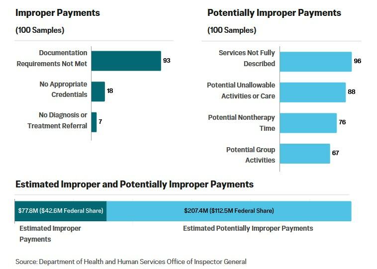 In 93 of 100 claims examined, the billing providers either did not provide notes verifying that the therapy took place, didn’t provide the required signatures, or billed for more time than the notes indicated.