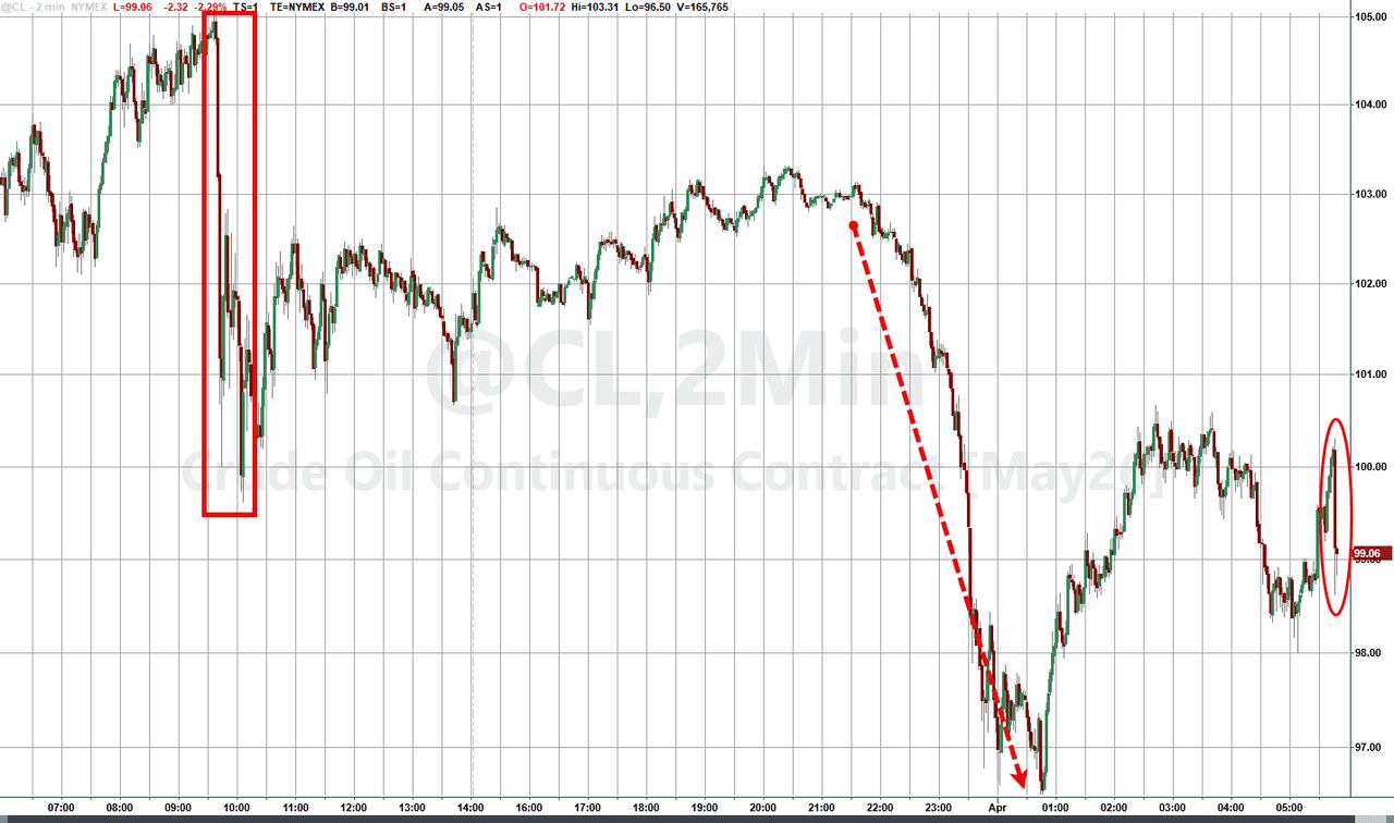 | Once upon a time we warned to be alert about April Fool’s Day. But in recent years, a lot of ridiculous occurrences have been reality. On Monday night, the US and Israel struck an enormous weapons facility in Isfahan. A mushroom cloud appeared after the initial strike. Was it a missile depot or nuke center? Trump posted a video clip of the ginormous explosion. https://x.com/TrumpDailyPosts/status/2038781791071588855 WSJ: Trump Tells Aides He’s Willing to End War Without Reopening Hormuz. Equity futures soared on Monday night when the above headline appeared. Is Trump once again issuing verbal intervention to halt the stock market’s downtrend? Of course! Manipulation to boost abysmal Q1 performance was manic on Tuesday thanks to DJT. Of course, Fangs and related trading sardines led the huge rally because those stocks are over-owned by The Street. ESMs traded in a tiny range, mostly negative, from their 18:00 ET opening on Monday night until they broke lower at 1900 ET. After falling to the daily low of 6353.25 at 20:23 ET, ESMs spiked higher after the above WSJ story appeared. ESMs eventually hit 6462.00 at 2250 ET. After a moderate retreat, ESMs then rebounded and settled into a 34-handle trading range until they broke higher after the 7 ET US repo market opening. It was time to get long for the NYSE opening and Q1 performance gaming. ESMs broke higher 8 minutes after the NYSE opening. After hitting 6497.25 at 9:59 ET, ESMs fell to 6447.00 at 10:55 ET. The illegal but regular manipulation to game Q1 performance then commenced in earnest, greatly abetted by this report: Iran has ‘necessary will’ to end war but seeking guarantees, Pezeshkian tells EU Iranian President Masoud Pezeshkian said on Tuesday his country had the “necessary will” to end the ongoing war with Israel and the United States but is seeking guarantees that the conflict would not be repeated. “We possess the necessary will to end this conflict, provided that essential conditions are met, especially the guarantees required to prevent repetition of the aggression,” Pezeshkian said in a phone conversation with the president of the European Council, according to a statement from his office, reiterating a key demand of Tehran’s… https://www.euronews.com/2026/03/31/iran-has-necessary-will-to-end-war-but-seeking-guarantees-president-masoud-pezeshkian-says ESMs hit a daily high of 6583.25 at 15:49 ET. Money managers, traders, and hedge funds secured or salvaged billions of dollars in performance fees from the illegal manipulation. @realDonaldTrump: All of those countries that can’t get jet fuel because of the Strait of Hormuz, like the United Kingdom, which refused to get involved in the decapitation of Iran, I have a suggestion for you: Number 1, buy from the U.S., we have plenty, and Number 2, build up some delayed courage, go to the Strait, and just TAKE IT. You’ll have to start learning how to fight for yourself, the U.S.A. won’t be there to help you anymore, just like you weren’t there for us. Iran has been, essentially, decimated. The hard part is done. Go get your own oil! President DJT @realDonaldTrump: The Country of France wouldn’t let planes headed to Israel, loaded up with military supplies, fly over French territory. France has been VERY UNHELPFUL with respect to the “Butcher of Iran,” who has been successfully eliminated! The U.S.A. will REMEMBER!!! @elerianm Defying expectations, US consumer confidence improved this month, with the composite index rising from 91.0 to 91.8 (beating the consensus forecast of 87.9). Interestingly, this measure tells two different stories: The current conditions component drove the entire upward surprise while the expectations component fell, and year-ahead anticipated inflation increased from 5.5% to 6.2%. https://x.com/elerianm/status/2039001324730073259 GOP Sen. Graham to Trump: ‘Wind down’ Iran war, ‘wind up’ efforts for peace deal (Perpetual war hawk changes stripes due to poll numbers in the toilet) https://thehill.com/homenews/senate/5807742-trump-iran-war-peace-efforts/amp/ Positive aspects of previous session Stocks soared on verbal and manual manipulation to boost ugly Q1 performance. Fangs and related trading sardines soared. Gasoline and oil declined smartly. USMs closed +12/32. Negative aspects of previous session USMs should have rallied more; gasoline and oil should have declined more. Ambiguous aspects of previous session What happens if Iran surrenders? First Hour/Last Hour NYSE Action [S&P 500 Index]: 1st Hour: Up; Last Hour: Up Pivot Point for S&P 500 Index [above/below indicates daily trend to day traders]: 6487.82 Previous session (S&P 500 Index) High/Low: 6539.05; 6395.88 Q1 Top Sectors: Energy +37.24%, Materials +9.3%, Utilities (Nat Gas) +7.52%, Cons Staples +7.01% Q1 Worst Sectors: Financials -9.8%, Cons Discretionary -9.34%, Info Tech -9.25%, Comm Serv -7.1% Early Tuesday evening, Trump on Iran: “We’ll be leaving very soon…What happens to the straight, we’re not going to have anything to do with, because these countries… China will go up, and they’ll fuel up their beautiful ships, and they’ll leave, and they’ll take care of themselves. There’s no reason for us to do it… I would say that within 2 weeks…maybe 3.” https://x.com/RealAmVoice/status/2039105714740769215 Today – Traders will play for the start-of April rally. After the manic short covering and rabid manipulation on Tuesday, barring news, stocks should range trade for the session. ESMs are +18.00; NQMs are +107.00; USMs are -1/32; gas & oil are up modestly at 20:42 ET. Econ Data: March ADP Employment Change 40k; Feb Retail Sales 0.5% m/m, Ex-Autos 0.3%, Ex-Autos & Gas 0.3%; March S&P Global US Mfg. PMI 52.4; March ISM Mfg. 52.3, Prices Paid 74, New Orders 54.5; Employment 49; March Wards Total Vehicle Sales 15.86m; St. Louis Fed Pres Musalem 9:05 ET, Fed Gov Barr 910 ET; President plans to address the nation on Iran, Wednesday at 9